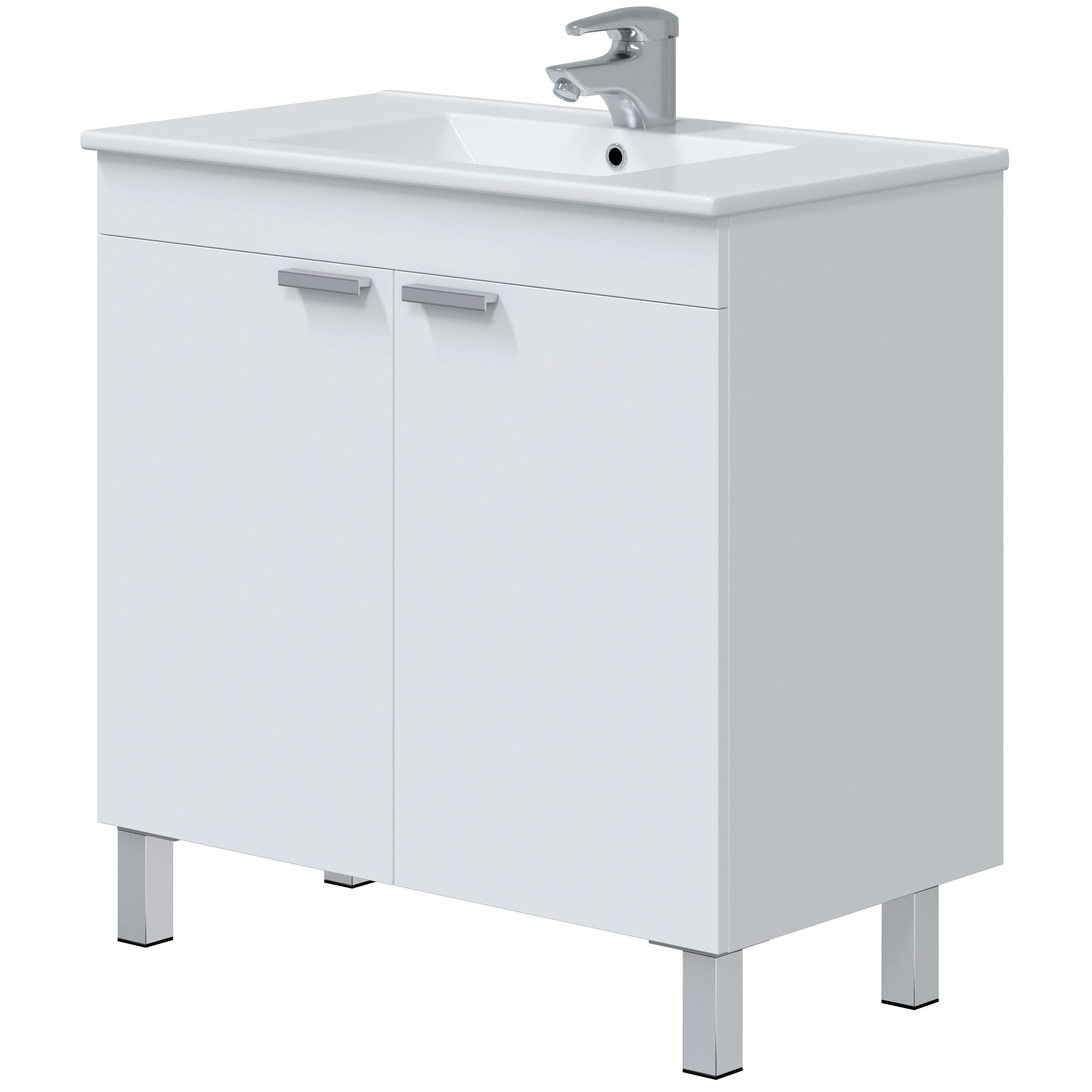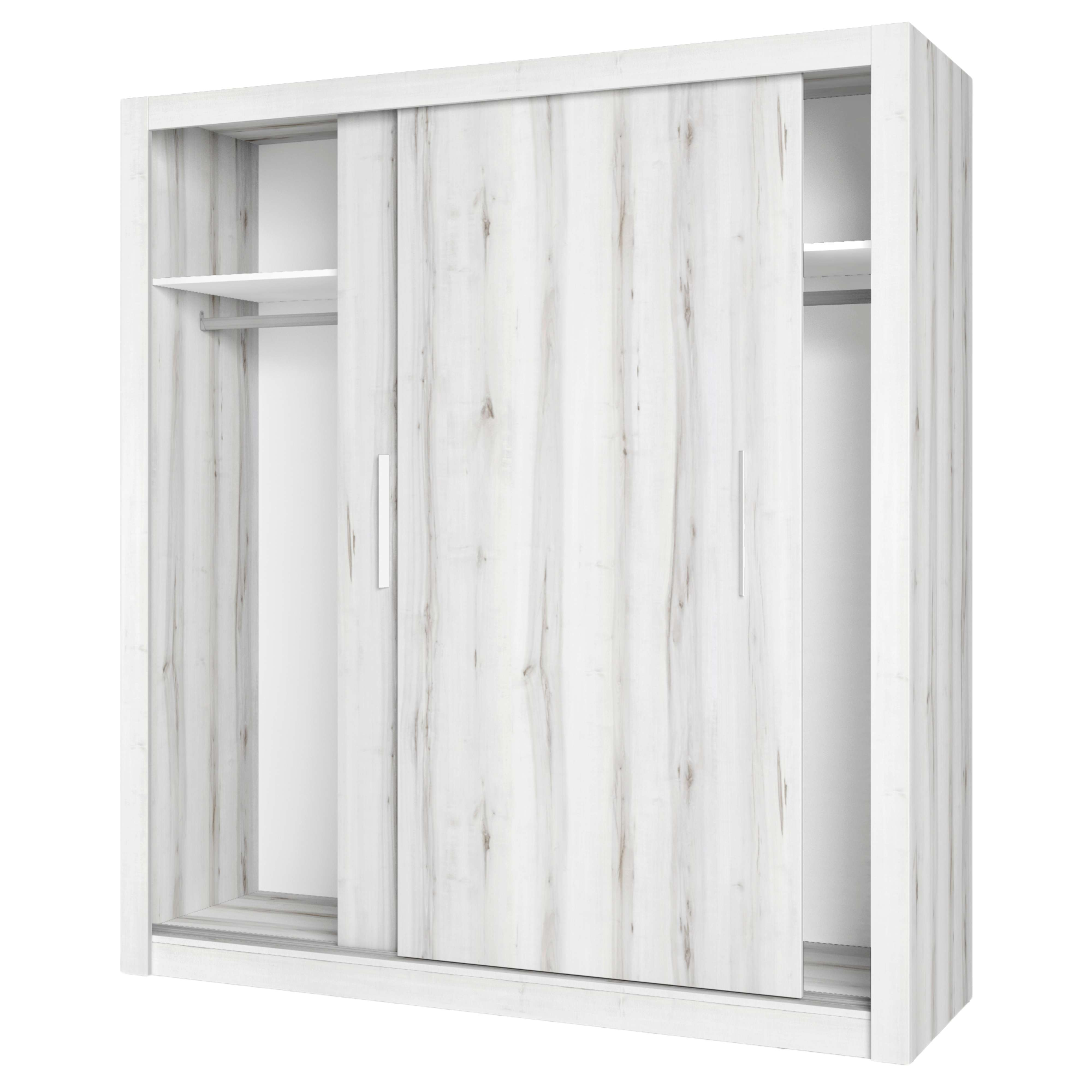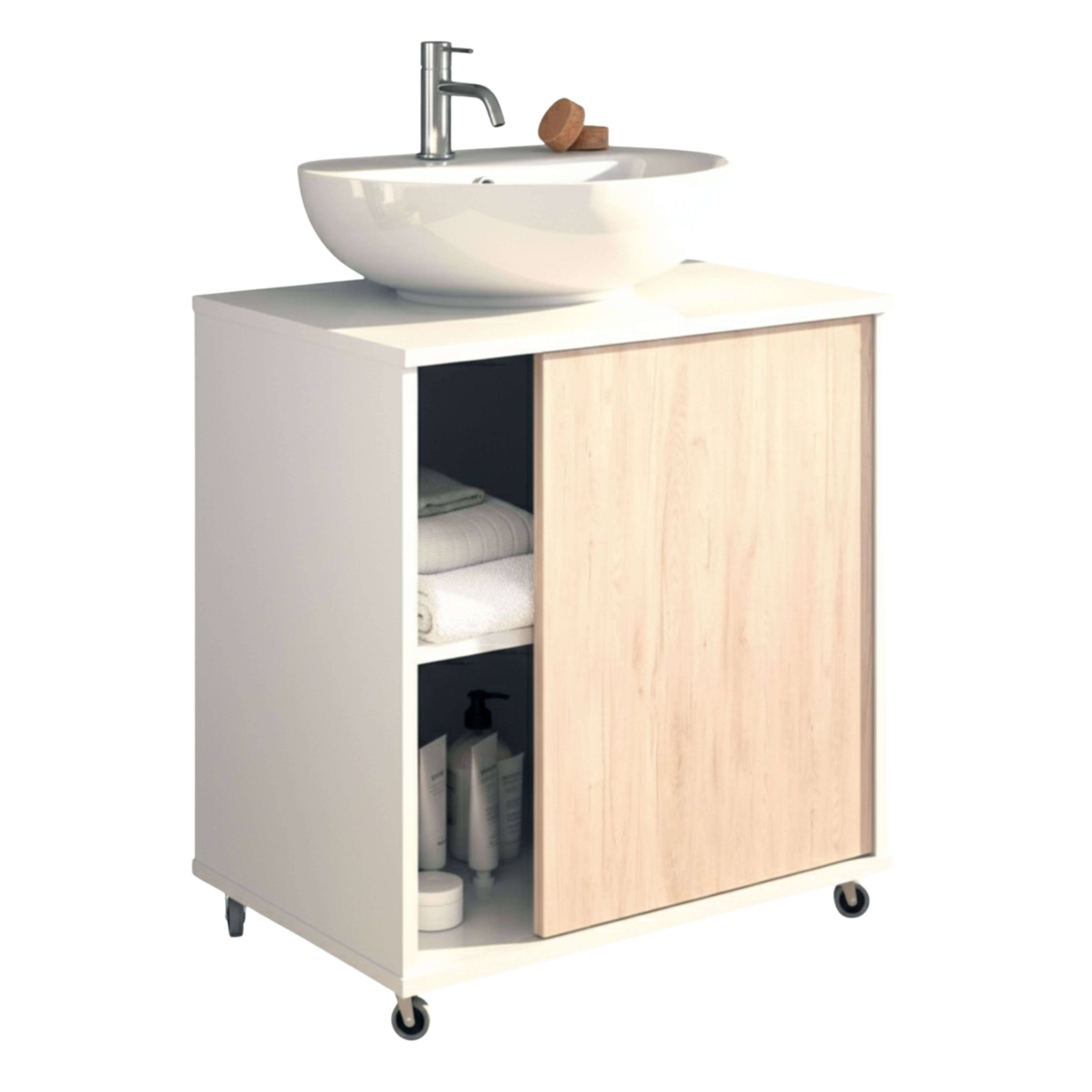 Melamina, trasera en DM, bisagras y guías correderas metálicas, tiradores en ABS, patas en aluminio, cantos en PVC