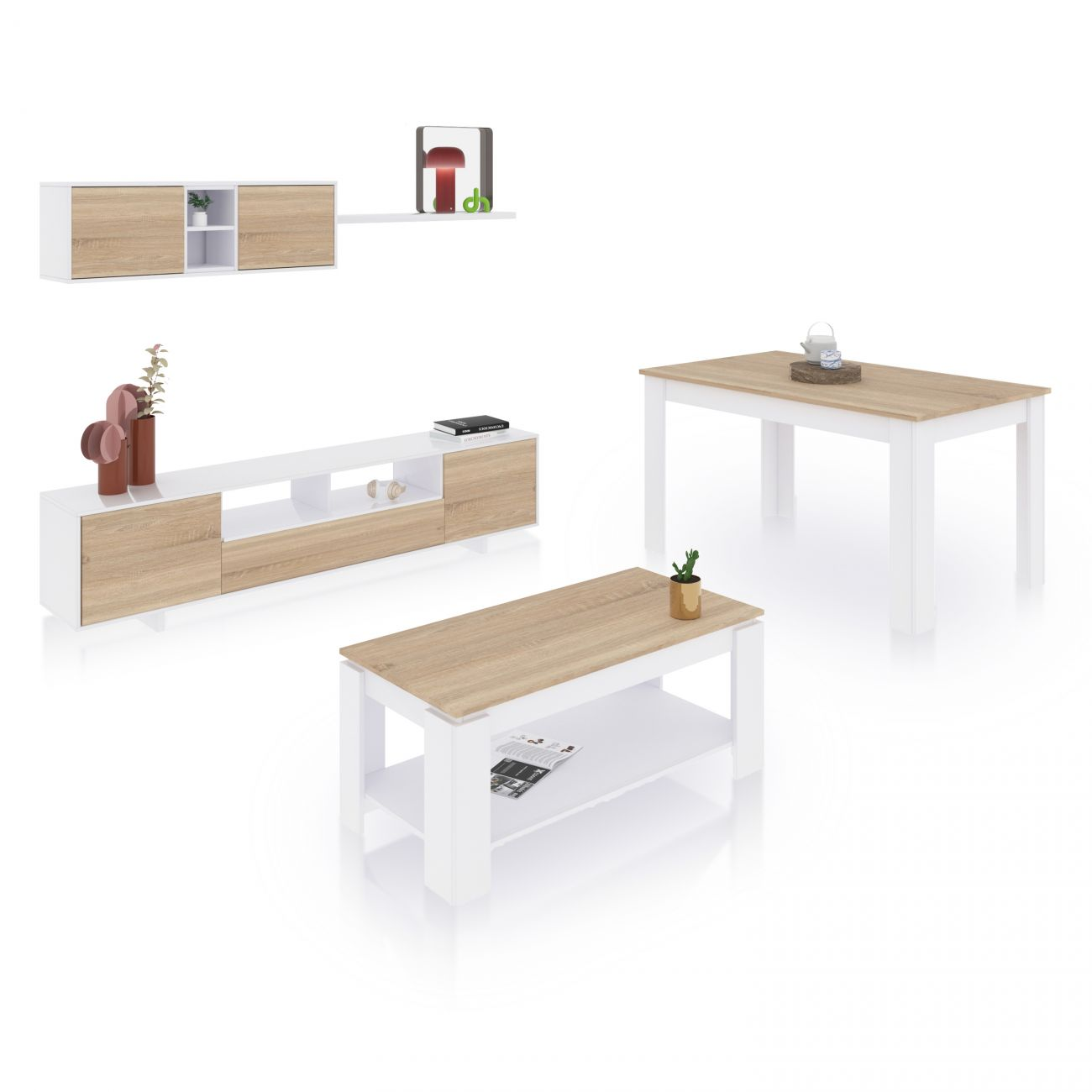 Mesa de centro - Arlet DUEHOME, Blanco Artik (Blanco Mate) - Roble Canadian