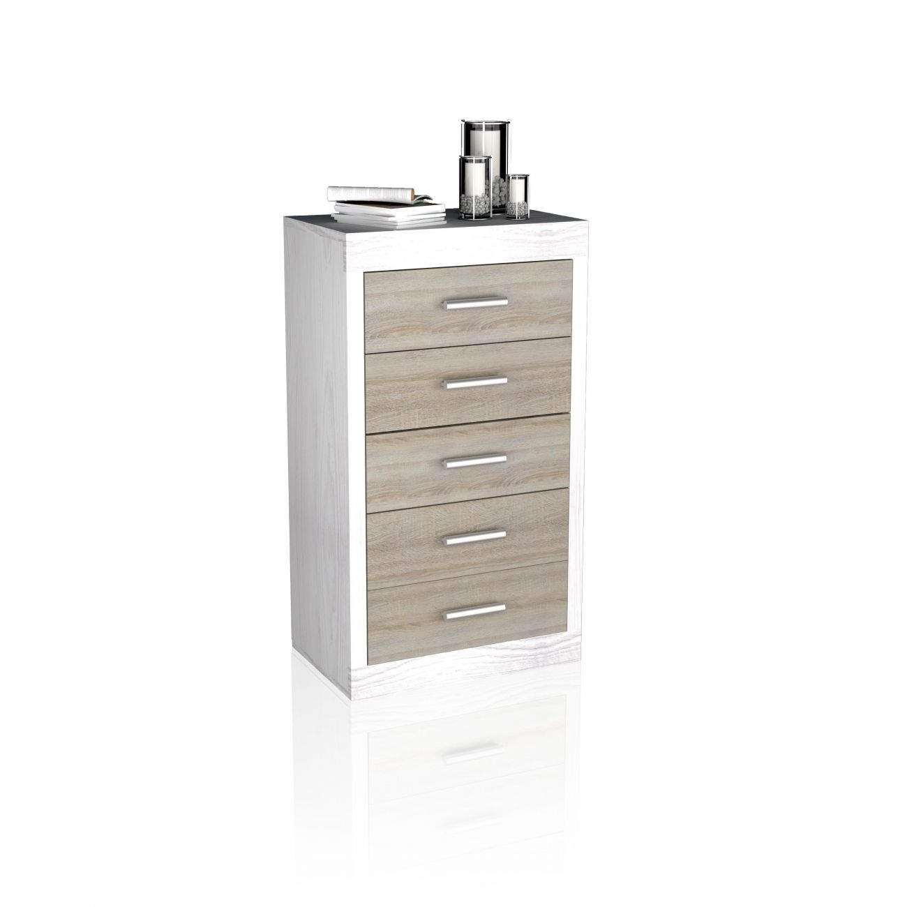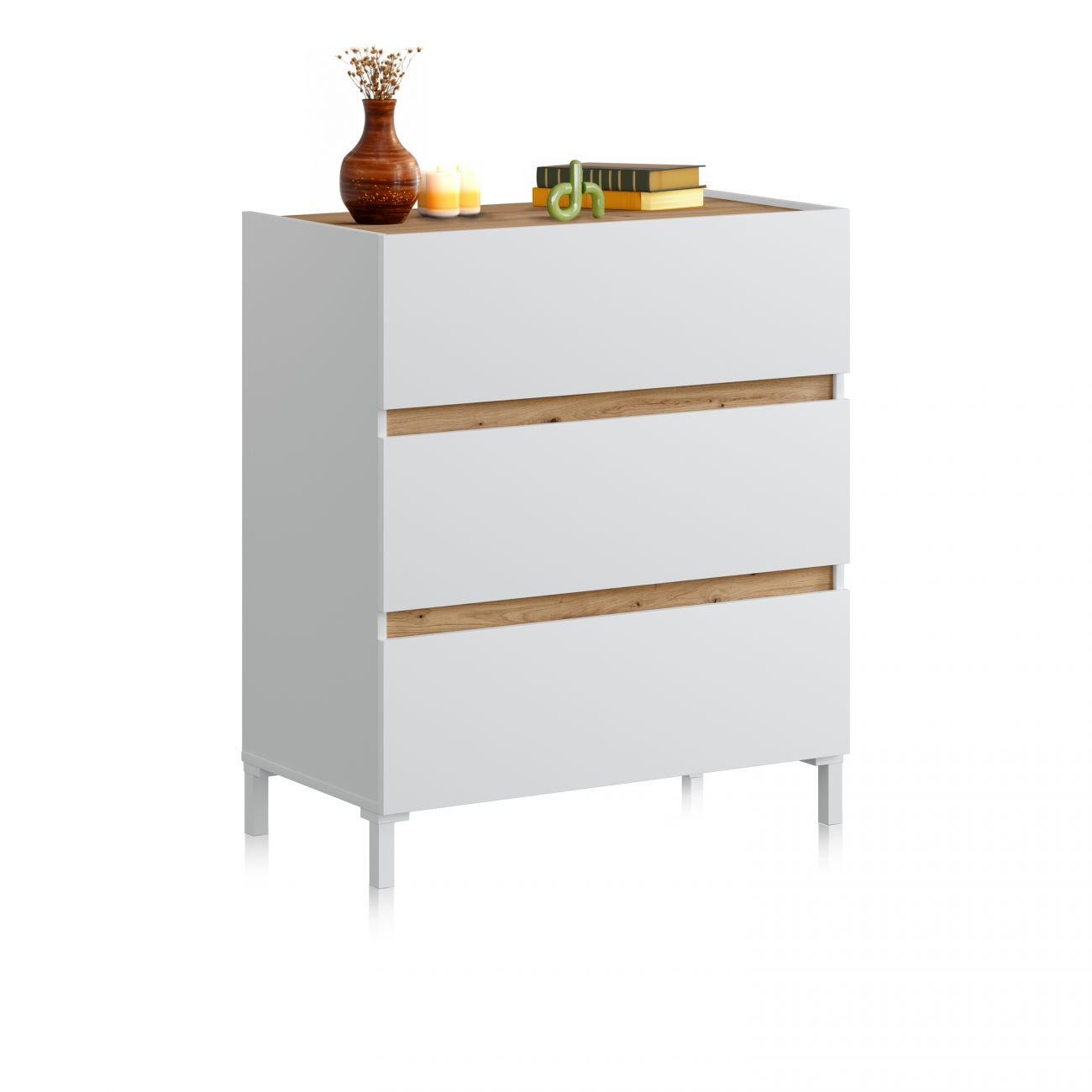 Cajonera - Eris DUEHOME, Blanco Artik (Blanco Mate) - Roble Canadian