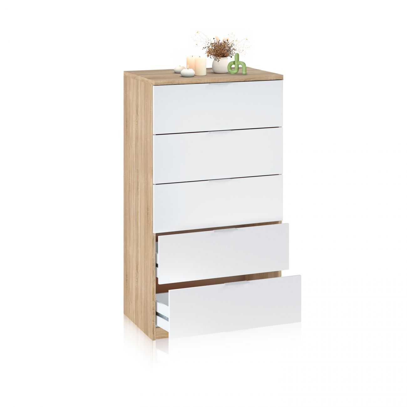 Cómoda - Akari DUEHOME, Blanco Artik (Blanco Mate) - Roble Canadian