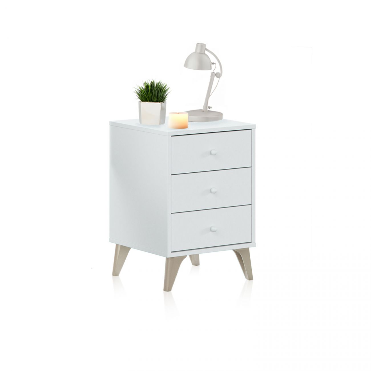 Mesita de noche - Iconic DUEHOME, Blanco Artik (Blanco Mate)