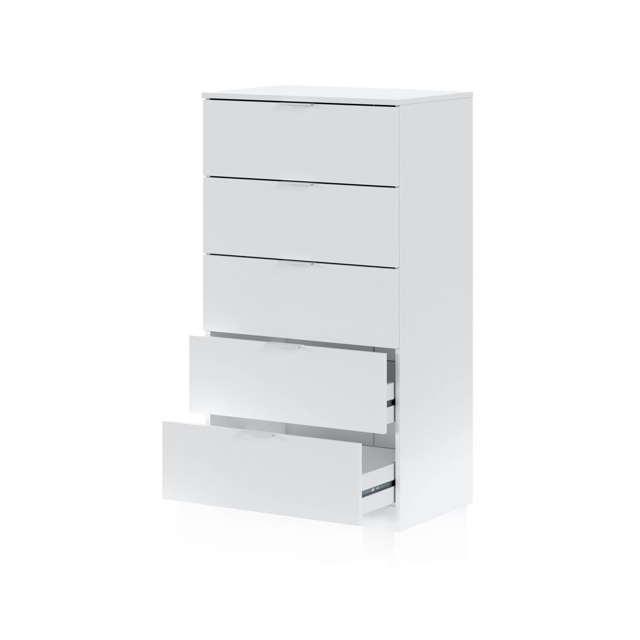 Melamina, tacos ABS, guías metálicas correderas y tiradores de aluminio