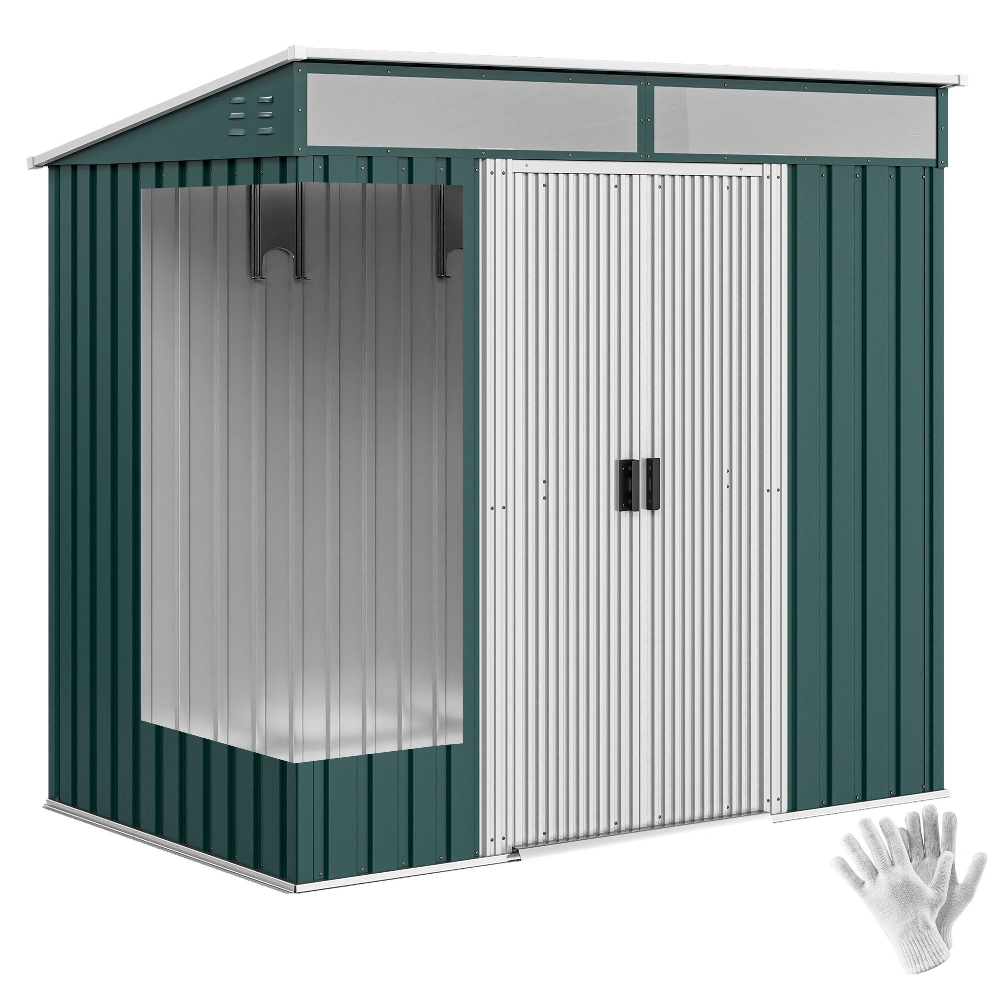 Outsunny Caseta de Jardín Exterior 2,36m² 213x120x194 cm Cobertizo de Jardín Exterior con Base Refuerzo (Suelo NO Incluido) Puertas Correderas Dobles Candado Ventanas Verde Claro
