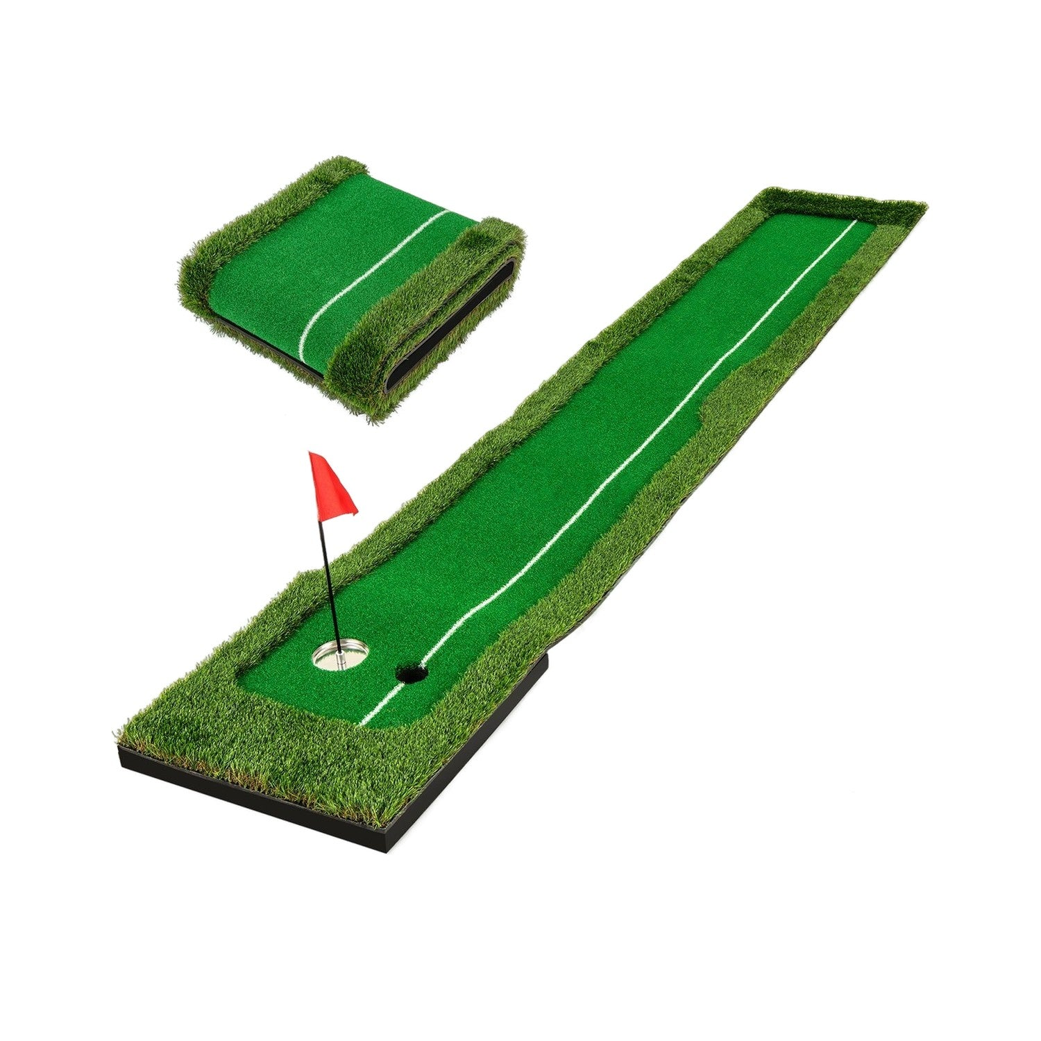 1x Tapete de golf, 2x Tees, 1x Varilla de alineación, 6x Agujeros de salida