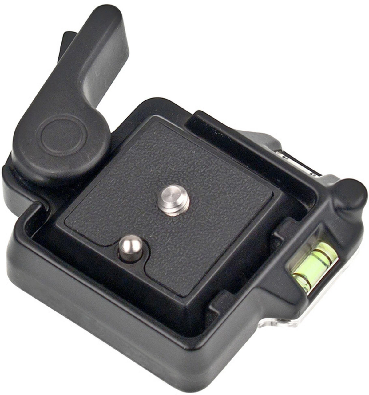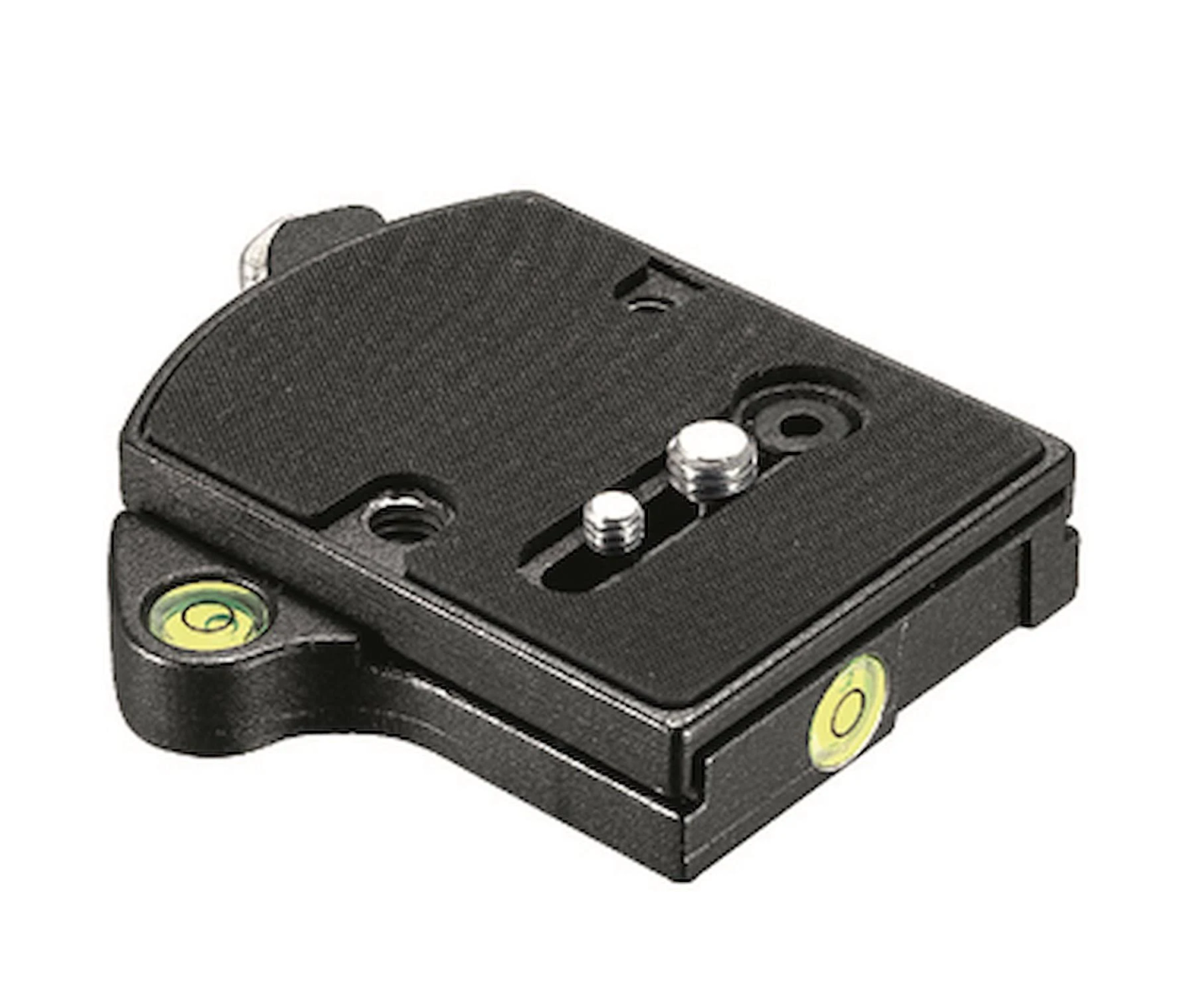 Se sirve con tornillos para cámara de 1/4'' y 3/8''. Fija roscas de 1/4'' y 3/8''. Plato 410PL incluido. Dotado con dos niveles de burbuja.