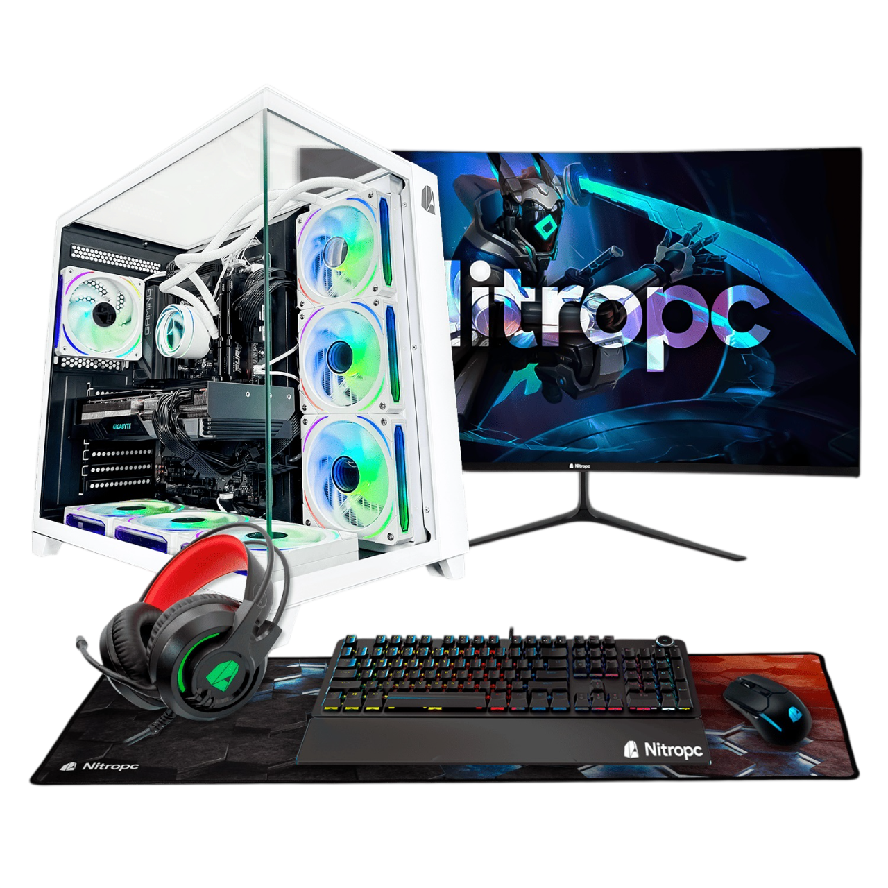 Pack PC gaming - NITROPC Pack Gold Plus v2, AMD Ryzen 7 5800X (8 núcleos, 16 hilos | 3,80 GHz hasta 4,70 GHz), Monitor 24" 120Hz IPS, 32 GB RAM, 1 TB SSD, GeForce RTX™ 5060, Windows 11 Pro, Monitor 24 " Full-HD, Blanco