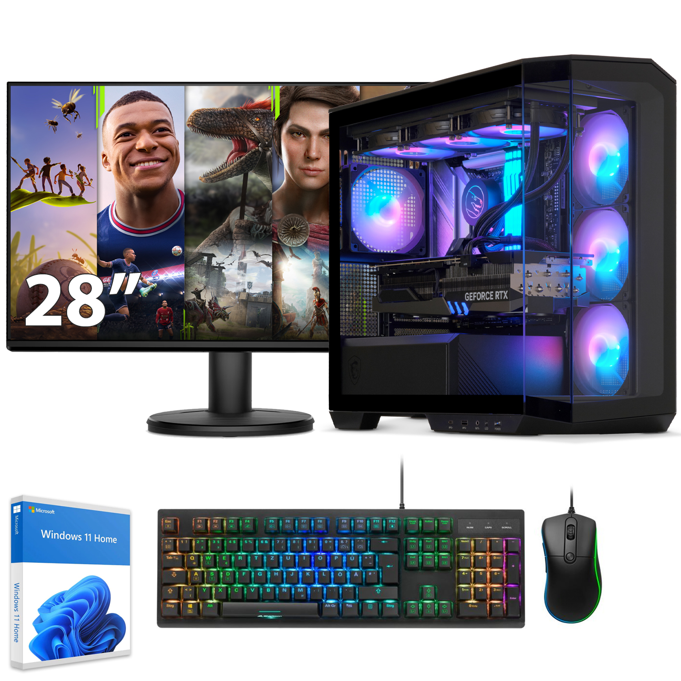 Pack PC gaming - SEDATECH UC0GC01I2M1HS, Intel i7-14700KF 20x 3.4Ghz (max 5.6Ghz), 32 GB RAM, 2000 GB SSD, GeForce RTX™ 4060 Ti, Windows 11 Home, Monitor 28 " HDR 4K, Negro