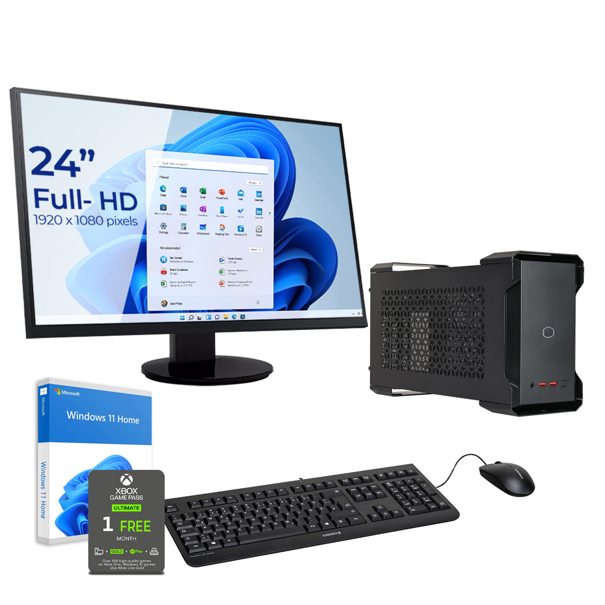 Pack PC gaming - SEDATECH UC0W100I1M1HS, AMD Ryzen 5 5600G 6x 3.9Ghz (max 4.4Ghz), 8 GB RAM, 1000 GB SSD, Radeon™ RX Vega 7, Windows 11 Home, Monitor 23,6 " Full-HD, Negro
