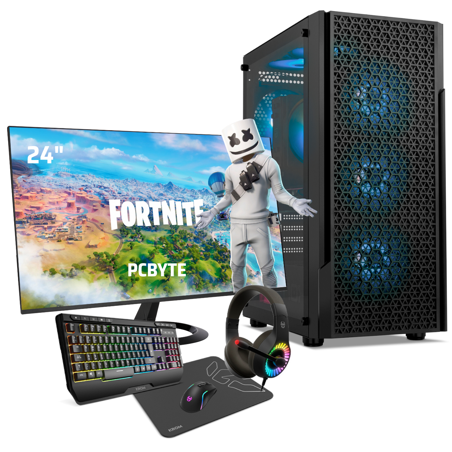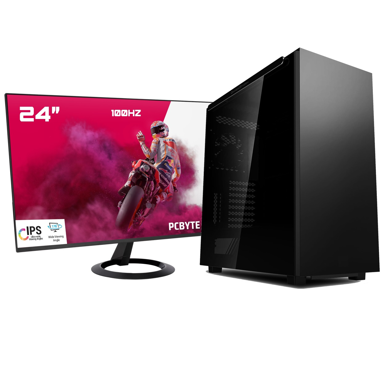 Pack PC gaming - PCBYTE Venence24, AMD Ryzen 55500GT 6 núcleos, frecuencia hasta 4,4GHz Turbo, 32 GB RAM, 2 TB SSD, Radeon™ RX Vega 7, Windows 11 Pro, Monitor 24 " Full-HD, Negro