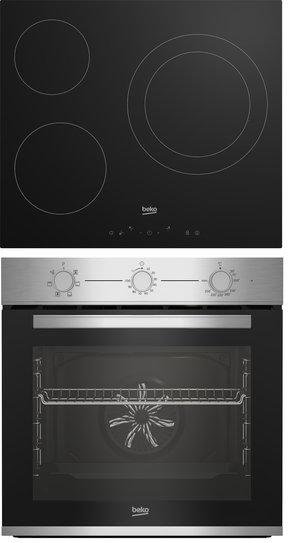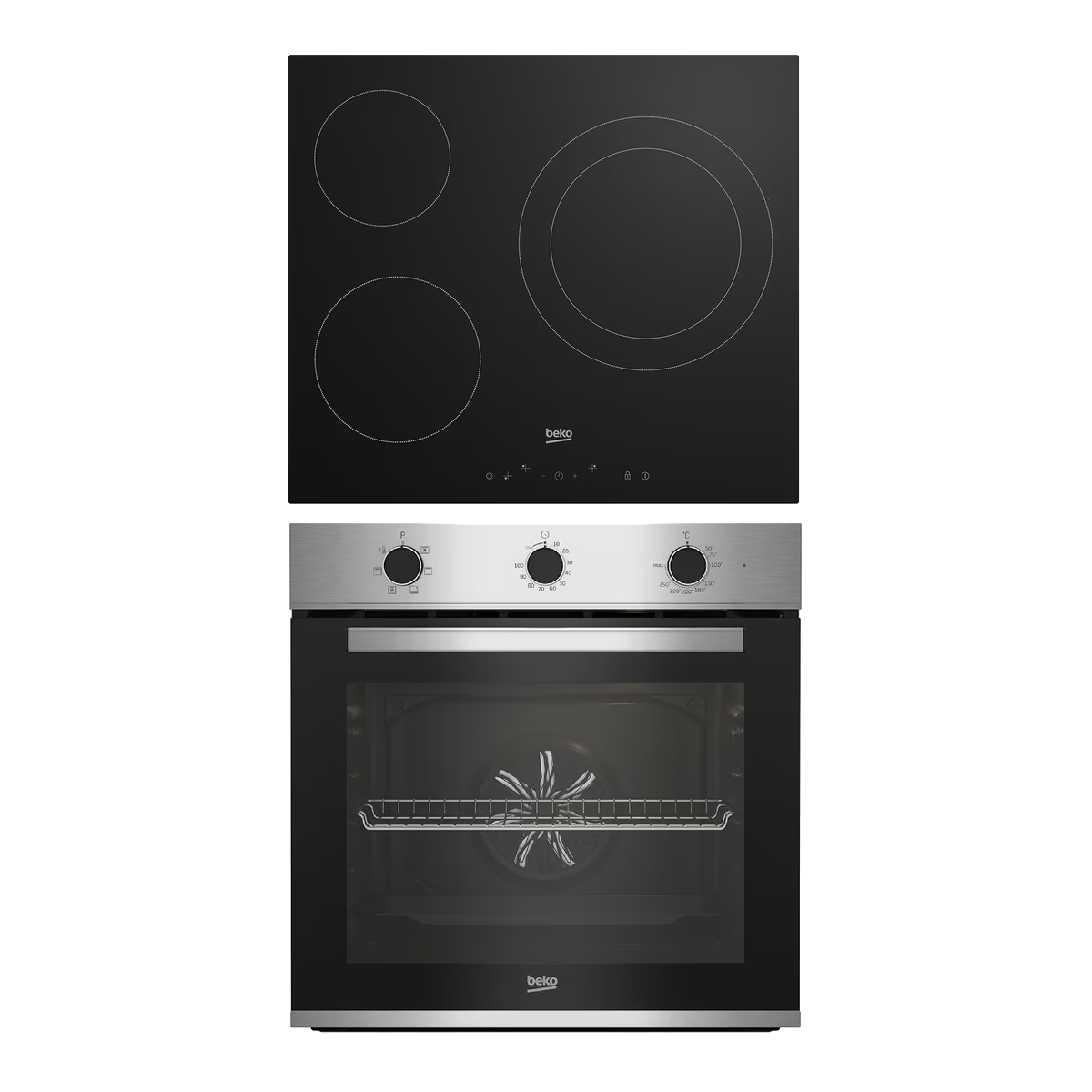 Pack Horno + Placa - Beko BBSE12120XD, Horno Multifunción, 72 l, Placa vitrocerámica, 3 zonas, 59 cm, Inox