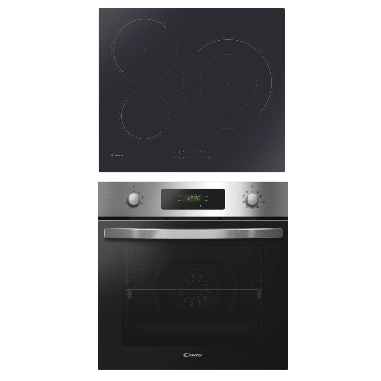 Pack Horno + Placa - Candy PCI27XCH63CC/4U2, Horno Multifunción, 65 l, Inox, Vitrocerámica, 3 Zonas, Negro