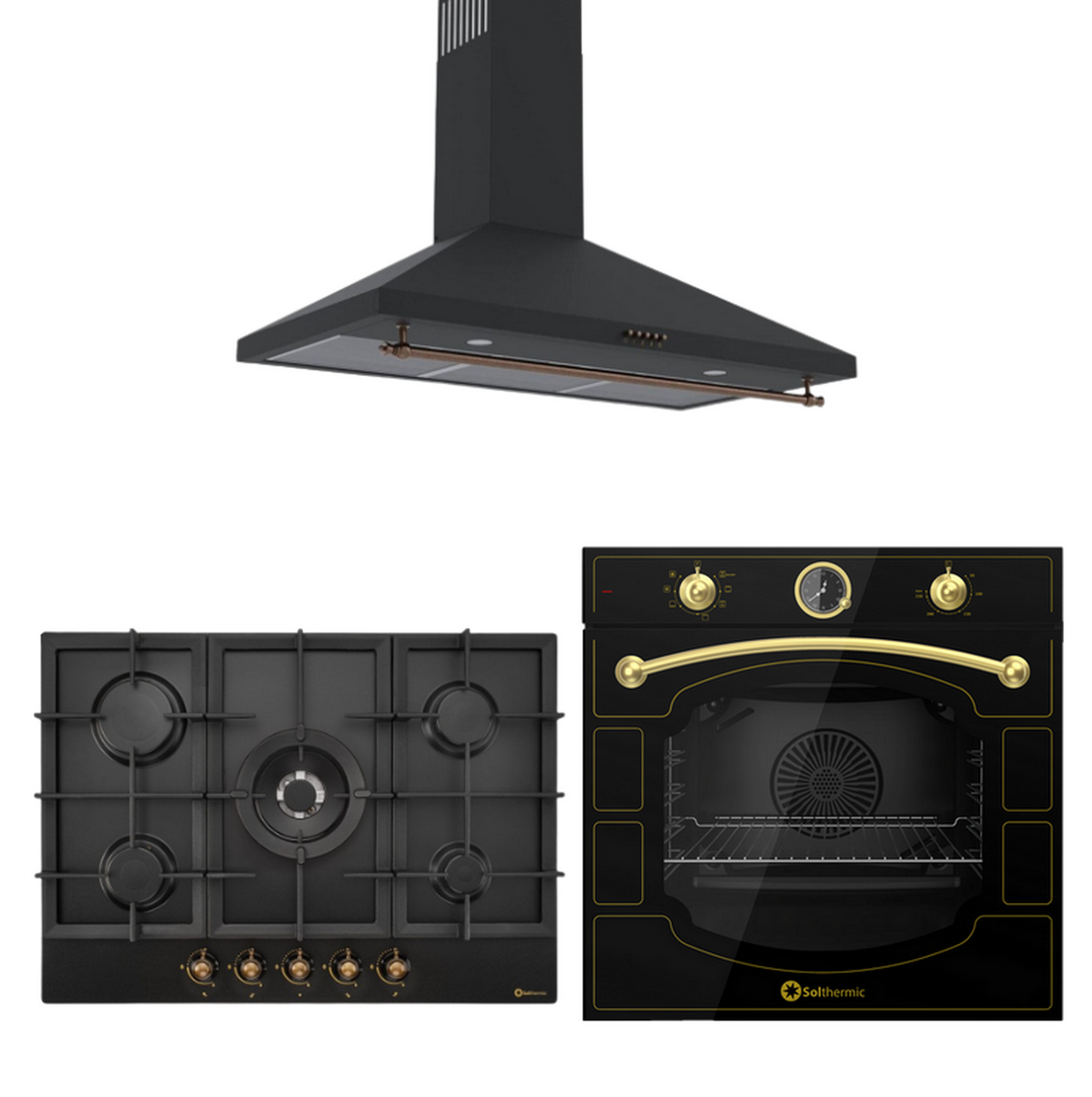 Conjunto Horno + Encimera + Campana - SOLTHERMIC PACK QRGAP+BL032+H60PR, 78 l, Gas, Negro