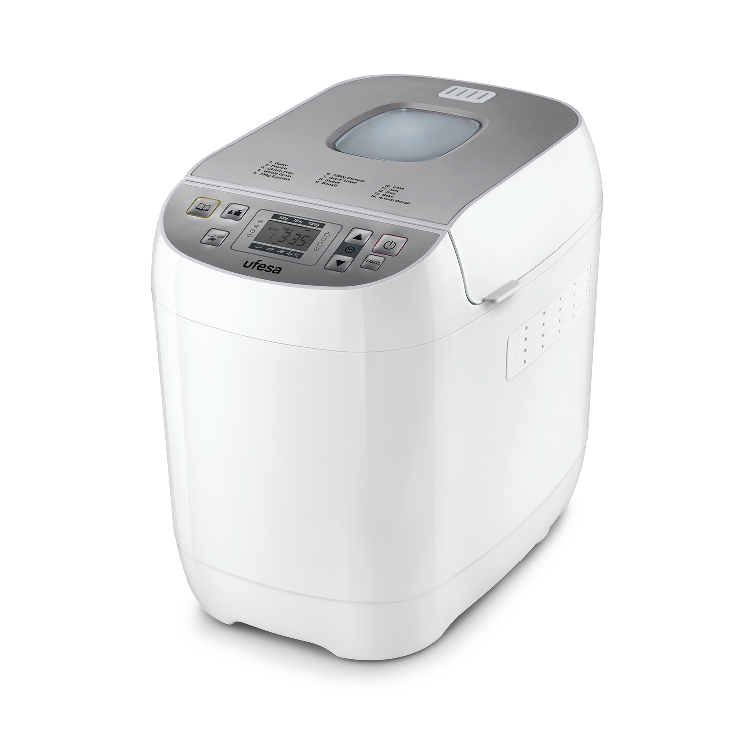 1x Panificadora, 1x Libro de recetas, 1x Taza de medición