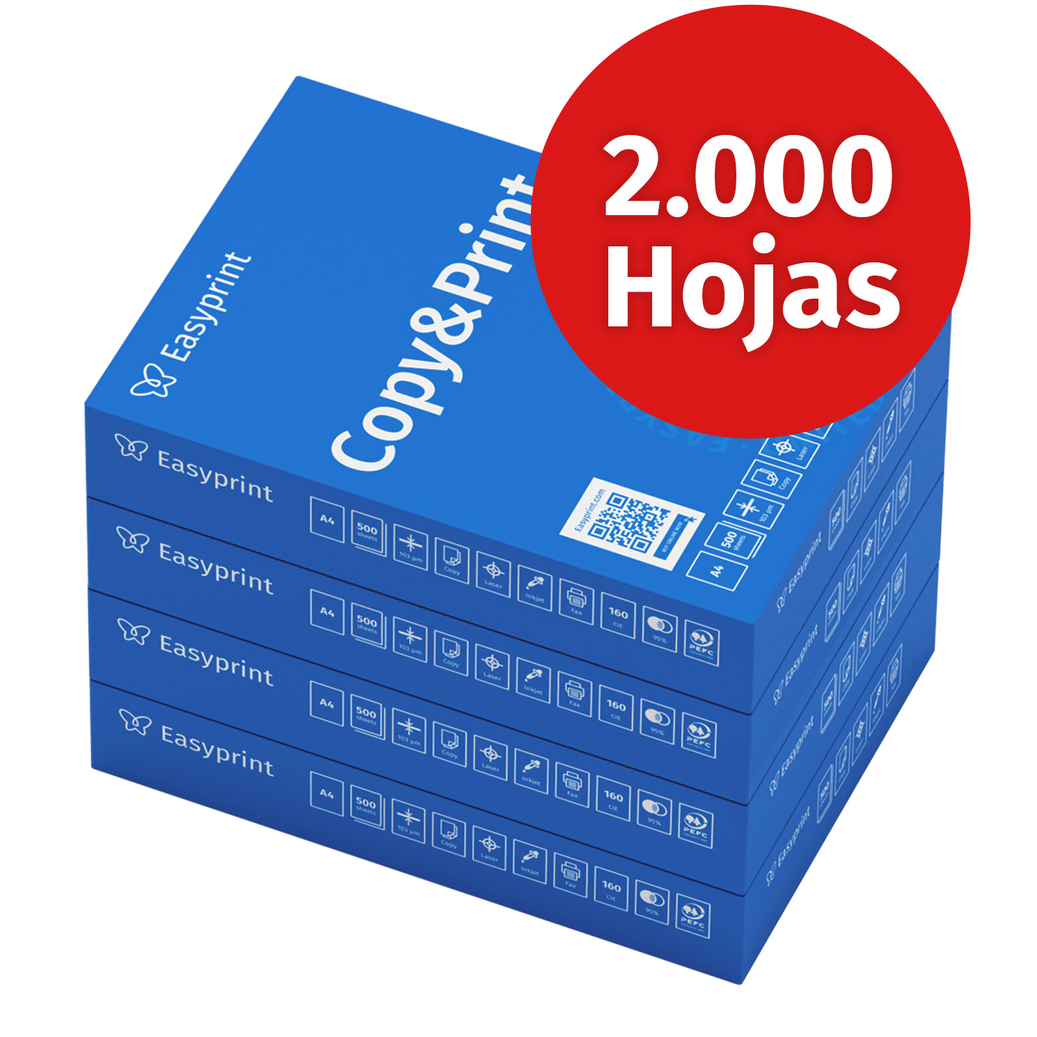 Papel de impresora - EASYPRINT 2 x 500 hojas de certificado ambiental PEFC, A4, blanco
