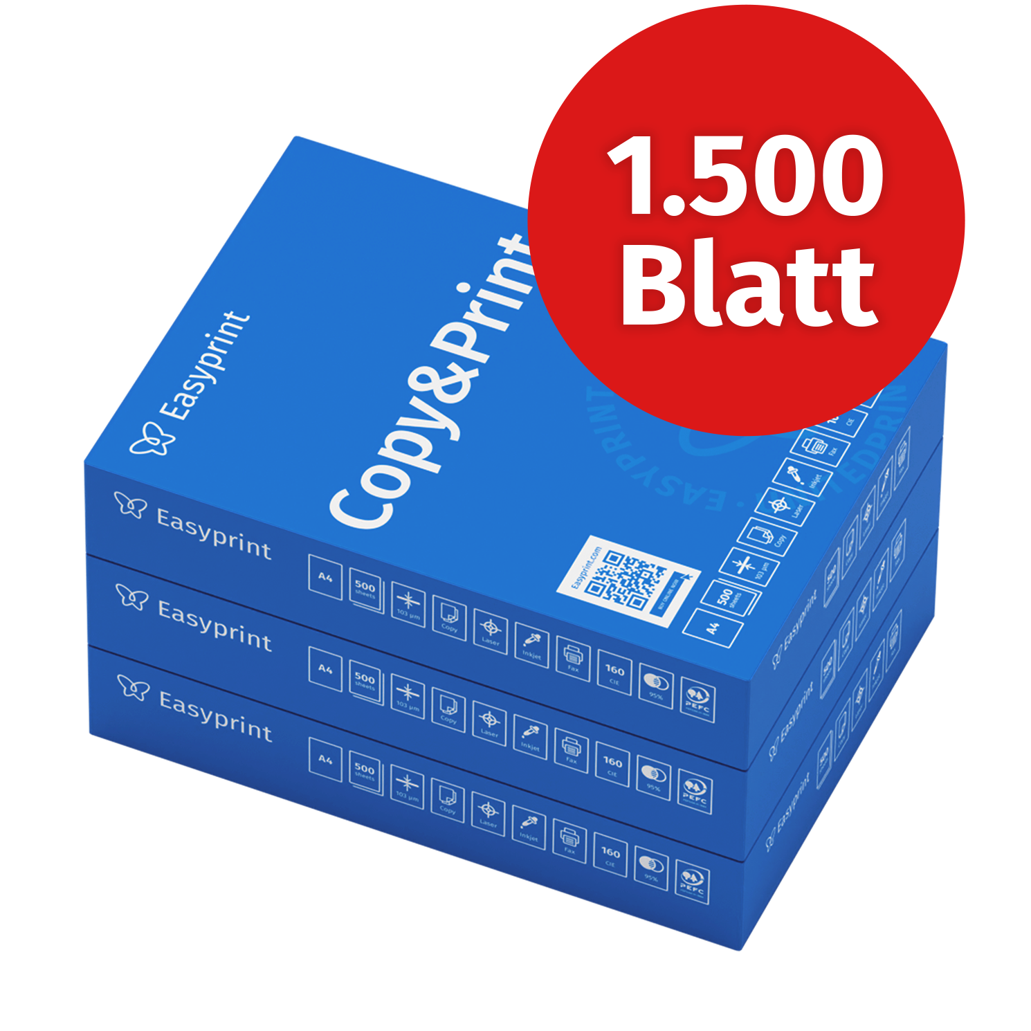Papel de impresora - EASYPRINT 3 x 500 hojas de certificado ambiental PEFC, A4, blanco
