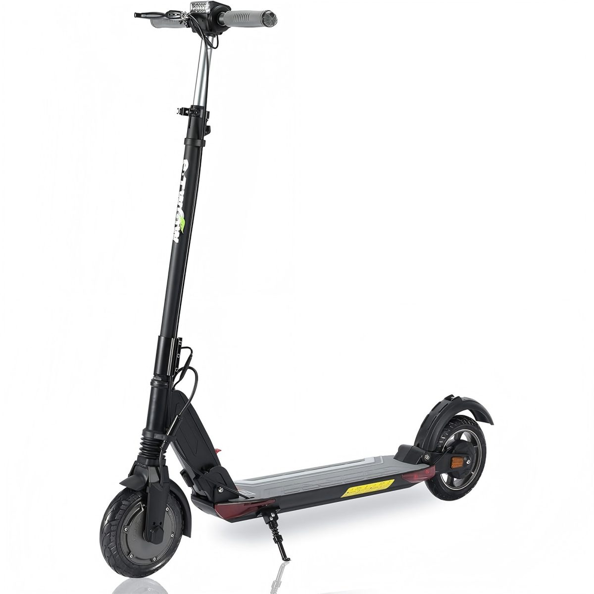 Cubre hasta 30 km de una tirada sin pararte, viaja a 25 km/h con potencia de 350 W que sube cuestas sin sudar. Esa autonomía larga evita la ansiedad de la pila baja, y la doble suspensión lo hace suave como andar en bici por el parque.