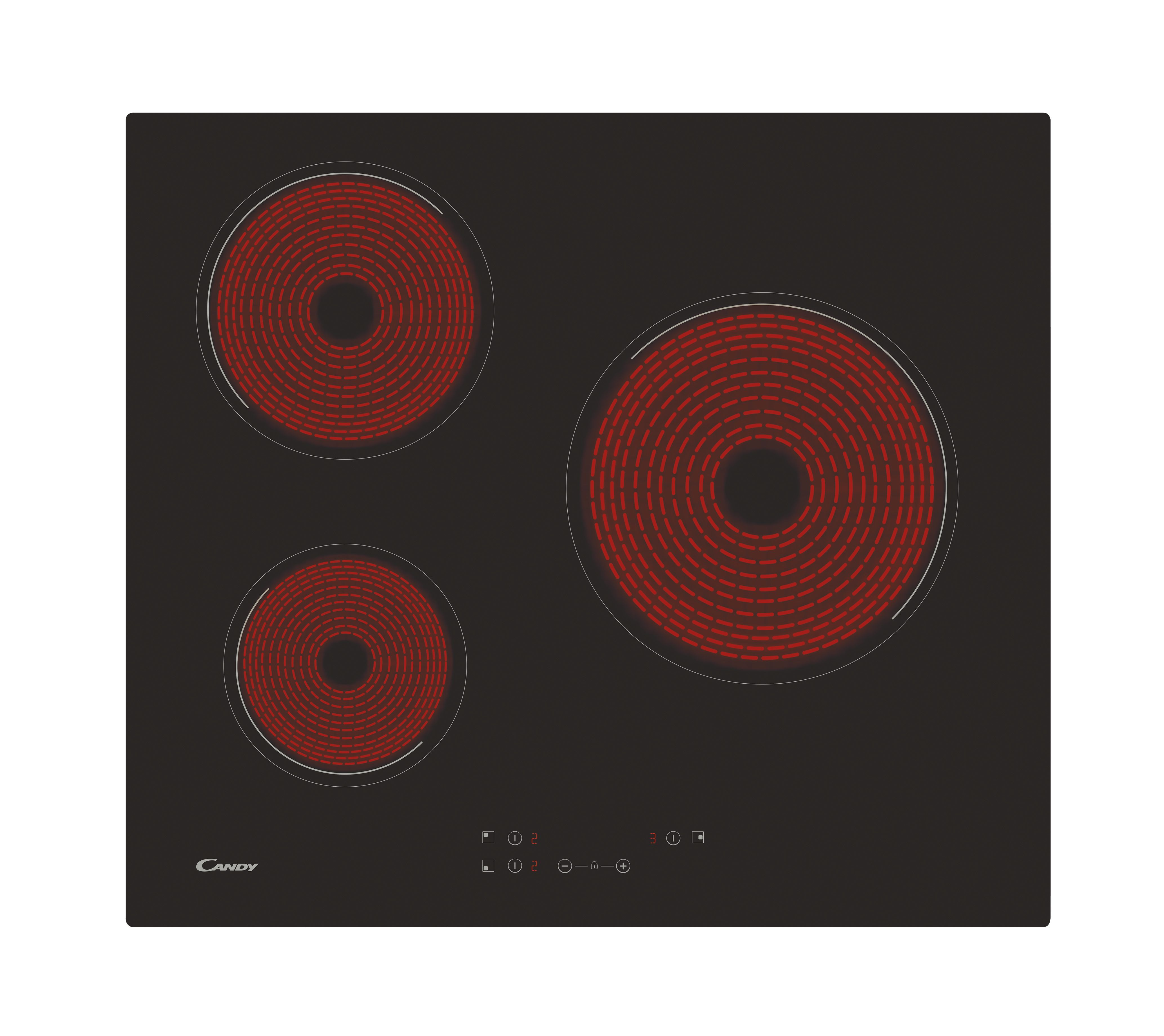 REACONDICIONADO Seminuevo Muy bueno Placa vitrocerámica - Candy Timeless CH63CC/4U2, 3 Zonas, Zona grande 25 cm, Float glass, 60 cm, Negro