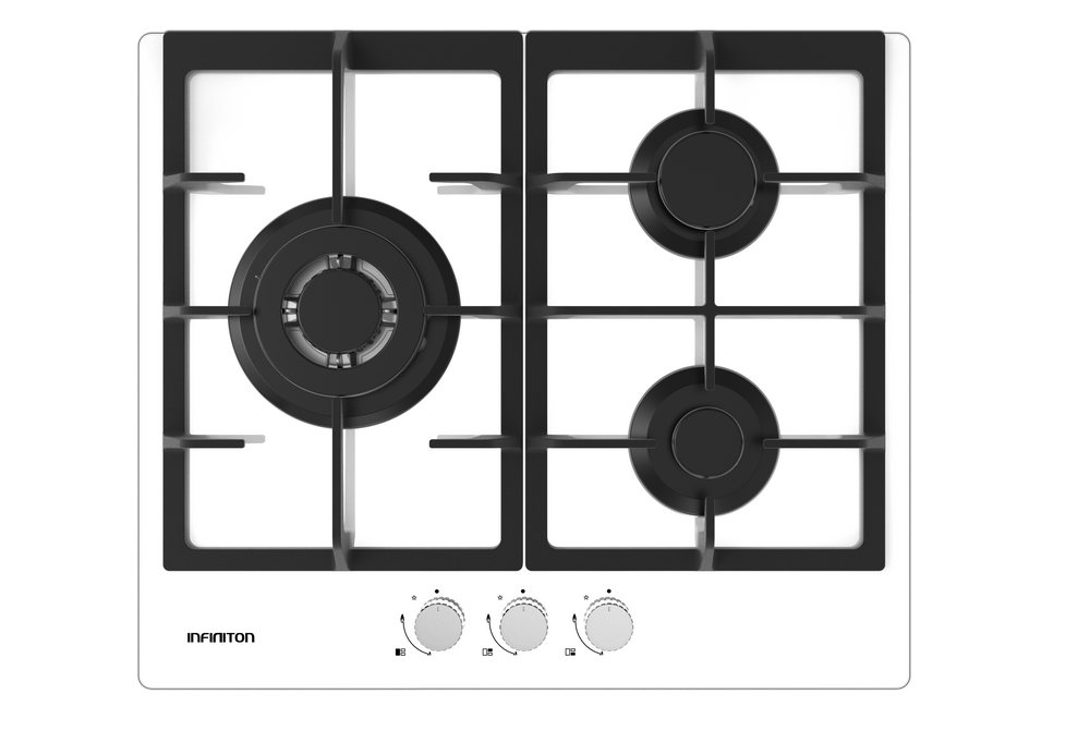 Placa de gas - Infiniton GG-332, 3 zonas, Gas Butano, 60 cm ancho, Inox