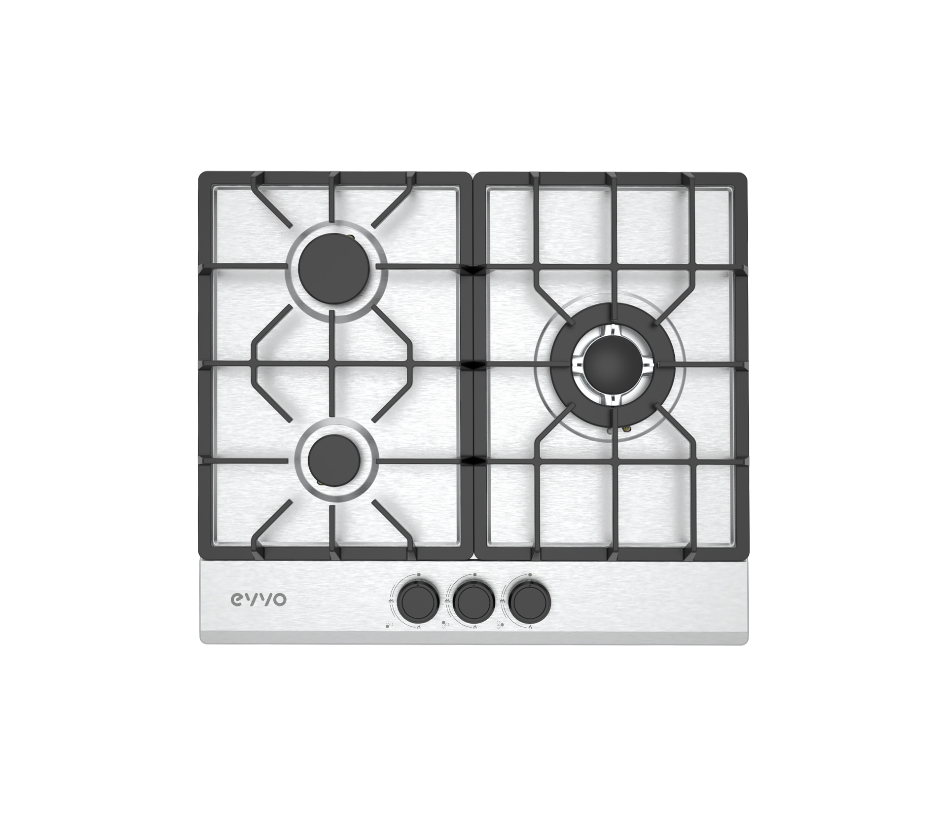 Placa de gas - EVVO V66 Inox, 3 zonas, 58 cm, Inox