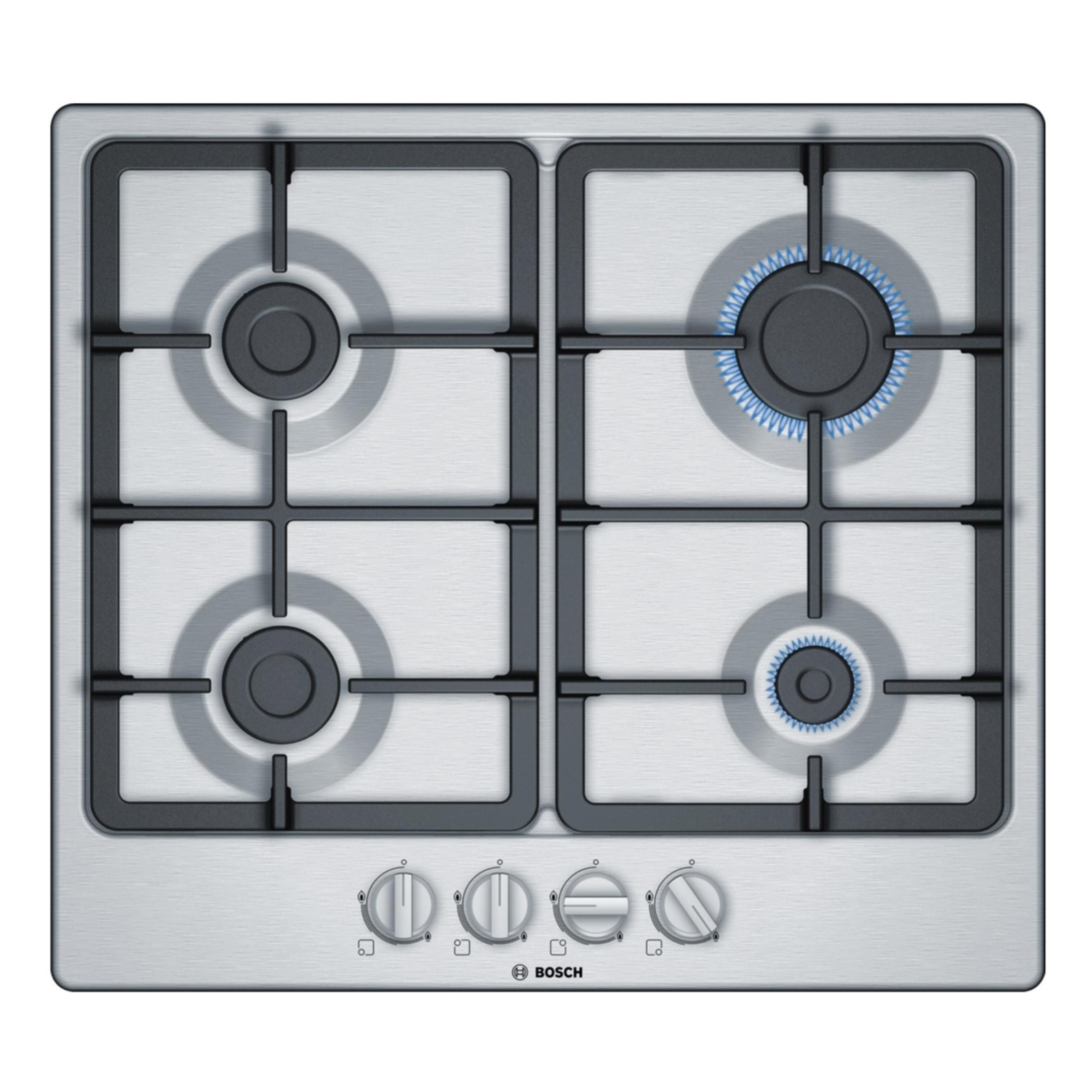 Placa de gas - BOSCH PGH6B5B90, 4 zone(s) zonas, NG + LPG (Propane/Butane), 58,2 cm, Inox