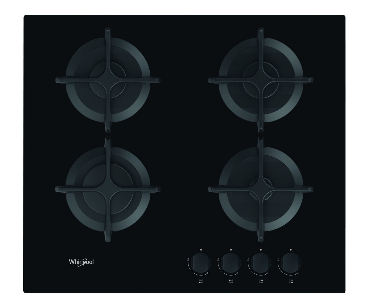 Placa de gas - Whirlpool GOB 616/NB, 4 zonas, Gas natural, 59 cm, Negro