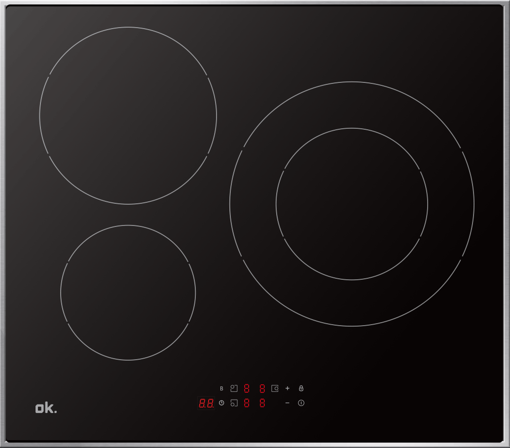 Placa inducción - ok. OBH 3611-1, 3 zonas, Zona grande 18/29 cm, 7200W, 51.7 cm, Negro