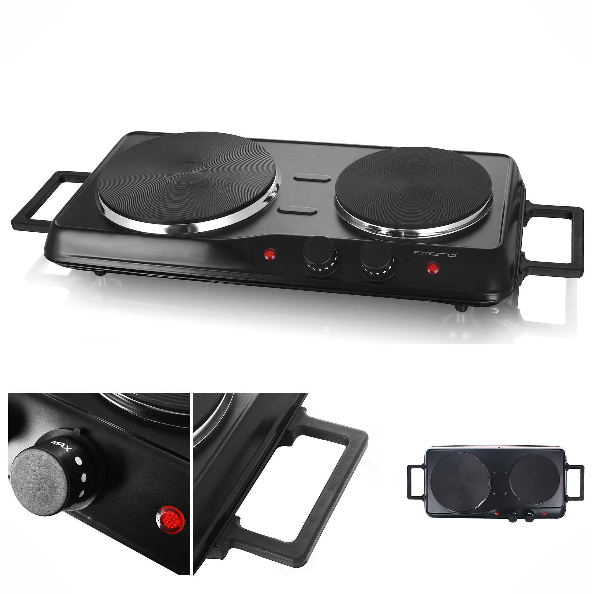 Placa portátil - CLATRONIC DKI 3609, Placa Inducción Doble Portátil, 10 Niveles Temperatura, 6 Niveles Potencia, Temporizador 1, 2 Fuegosl zonas, 610 mm, Negro