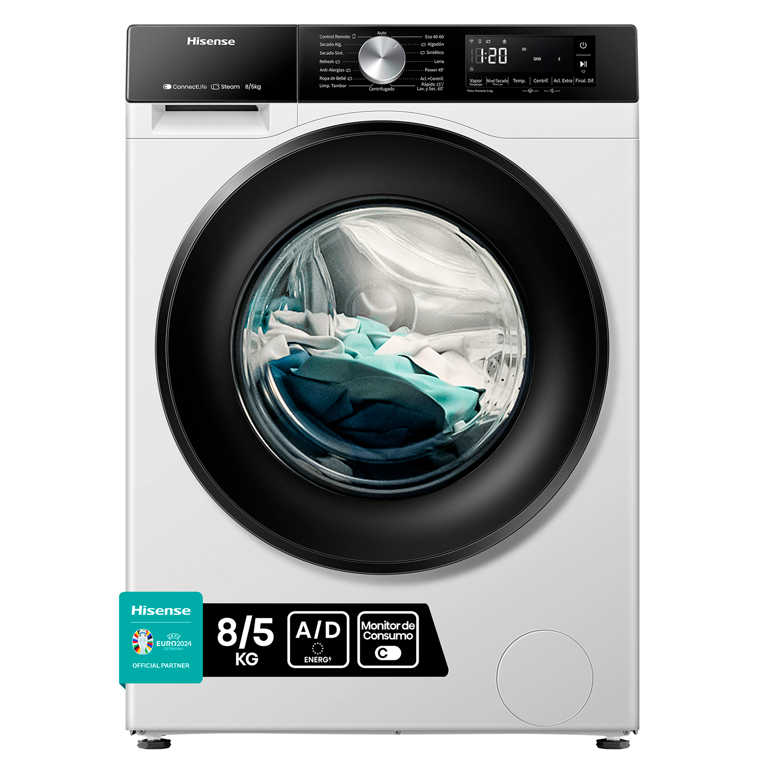 REACONDICIONADO Seminuevo Excelente Lavadora secadora - Hisense WD3S8043BW3, 8 kg/5 kg, 1400 rpm, 16 programas. Clase A-30%, WiFi, Blanco