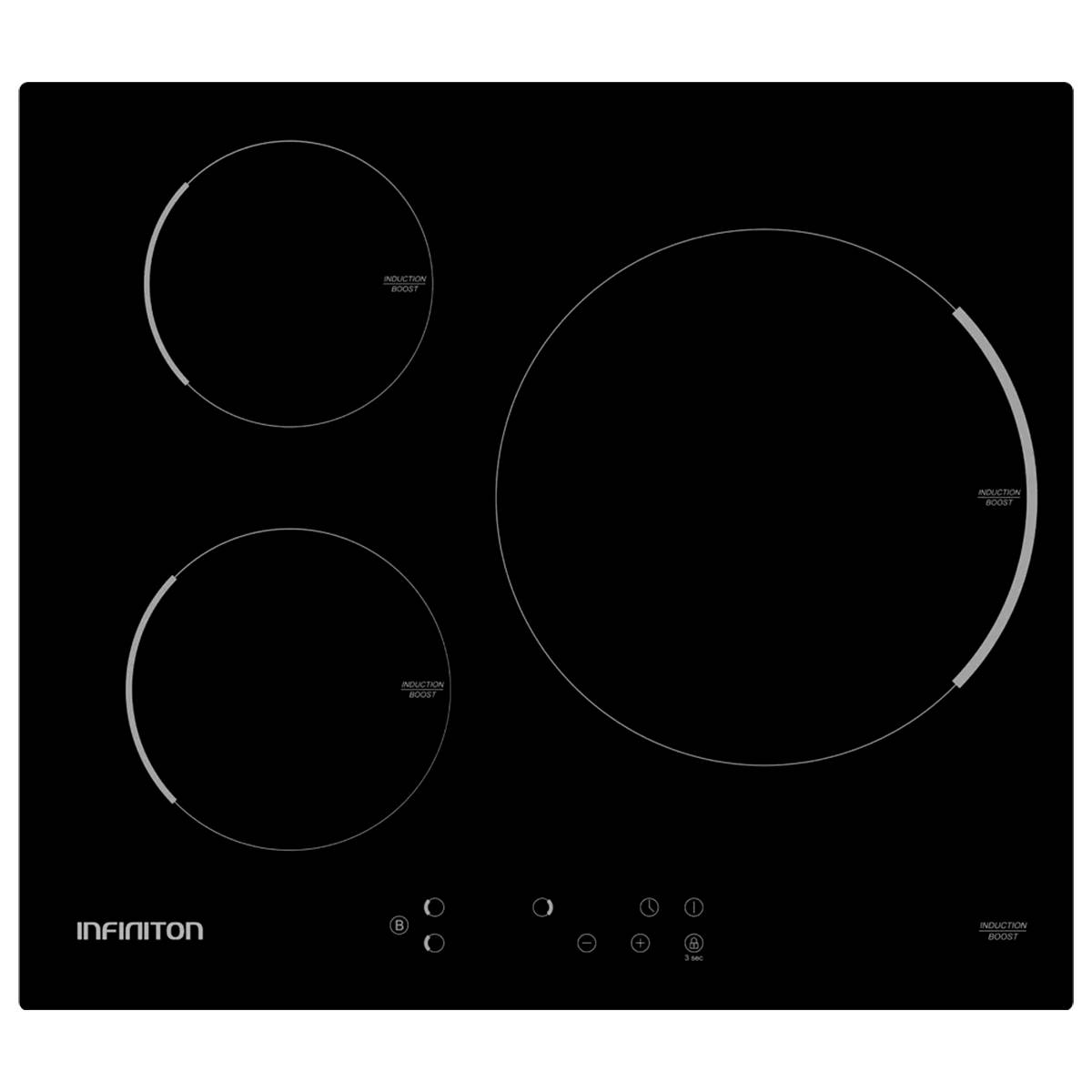 Placa de vitrocerámica - INFINITON IND-A3F, 3 zonas, 59 cm, Negro