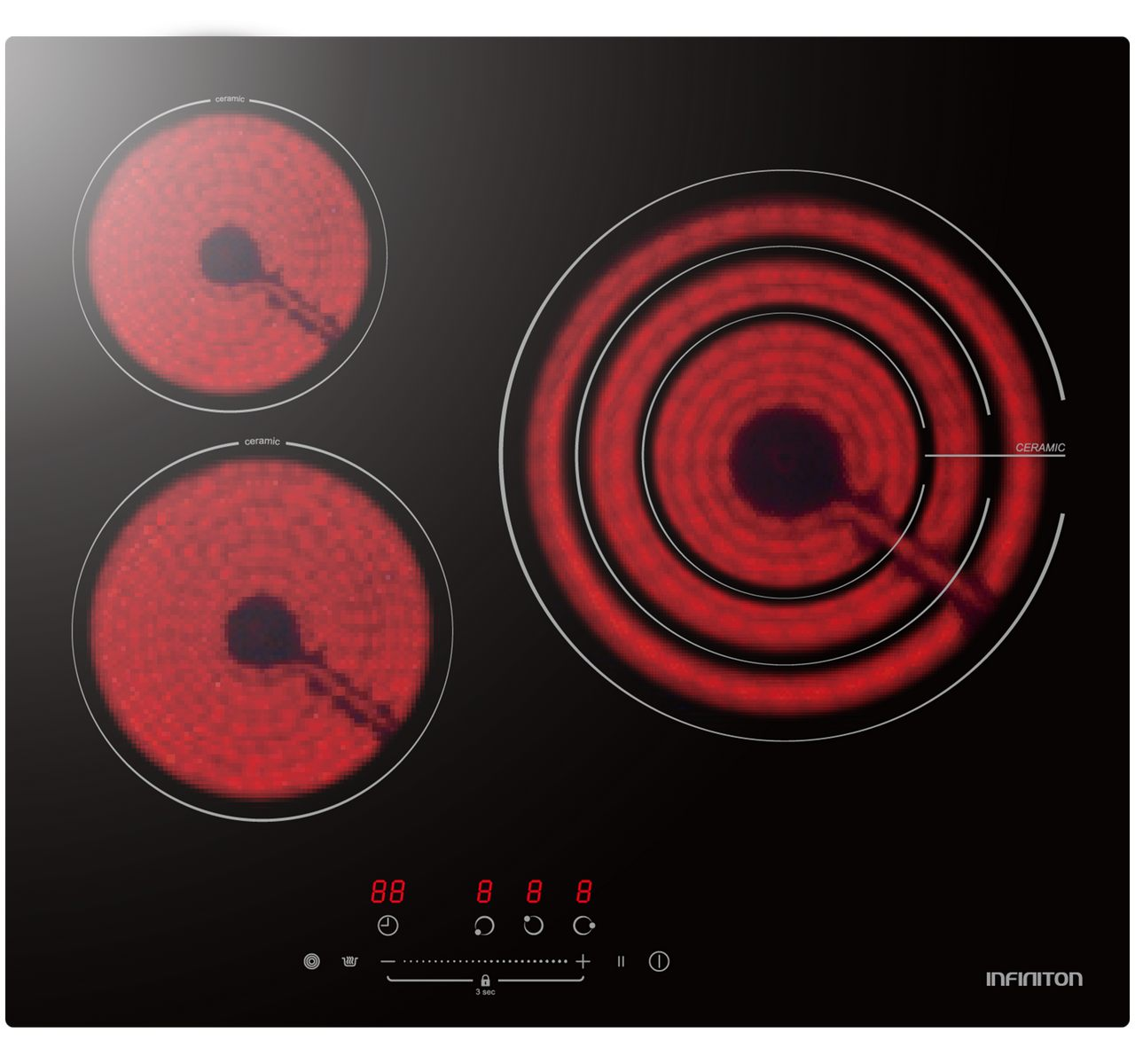 Placa vitroceramica - INFINITON VIT3SN30, 3 zonas, 59 cm, Negro