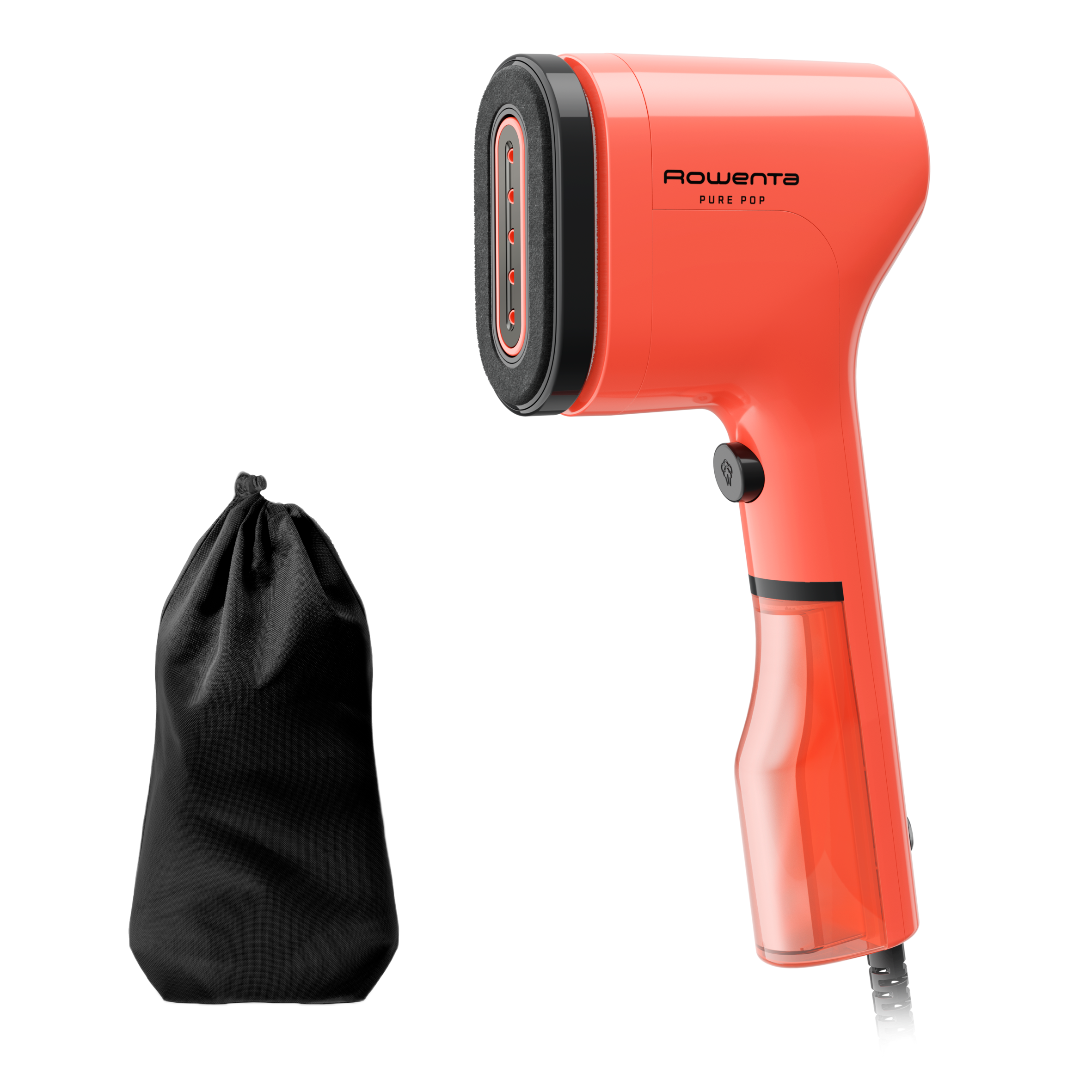 Plancha de vapor vertical - Rowenta Pure Pop DR2022D1, 1300W,Salida vapor 20g/min, 70ml, Calentamiento 15s, Elimina pelusas, arrugas y purifica, Coral