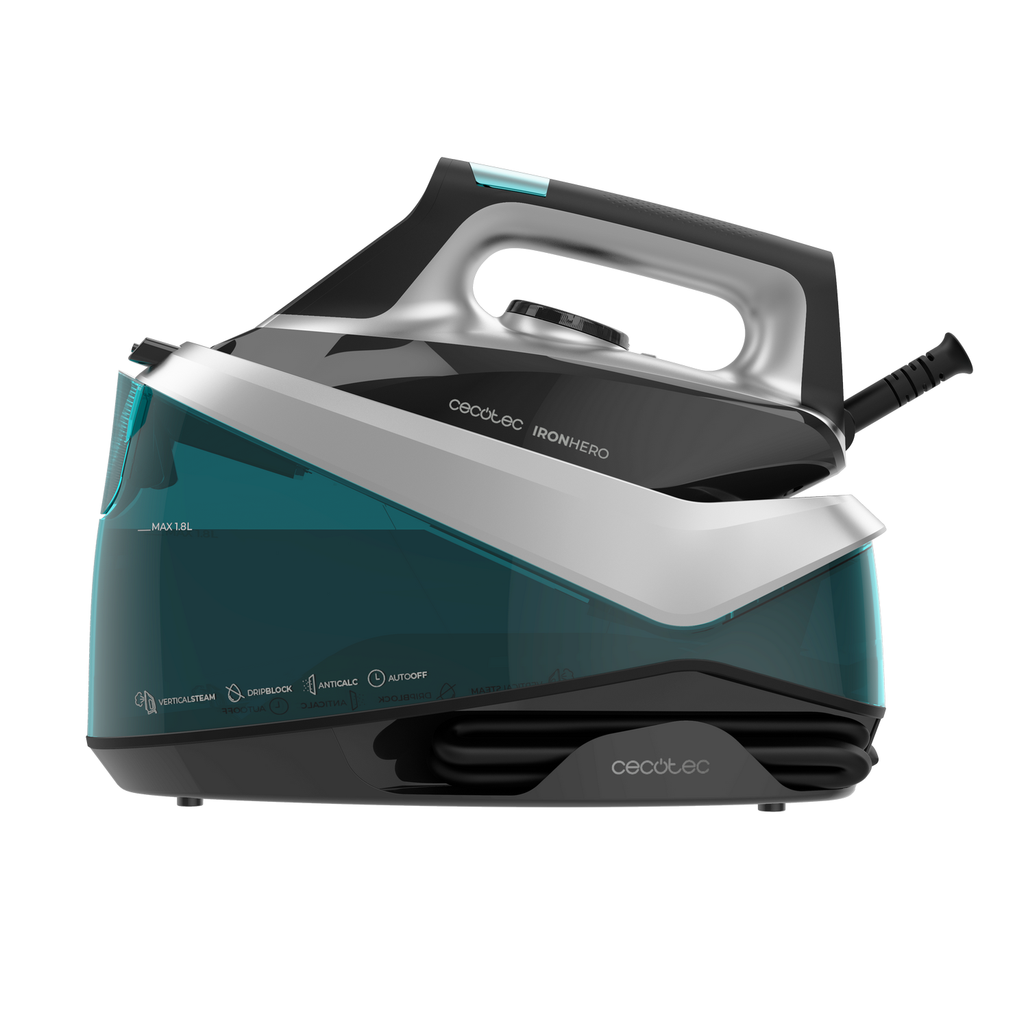 Centro de planchado - Cecotec IronHero 2800 Station, 2800 W, 135-360 g/min, 5 bar, Suela Turbo Slide de cerámica antideslizante y resistente, Gris