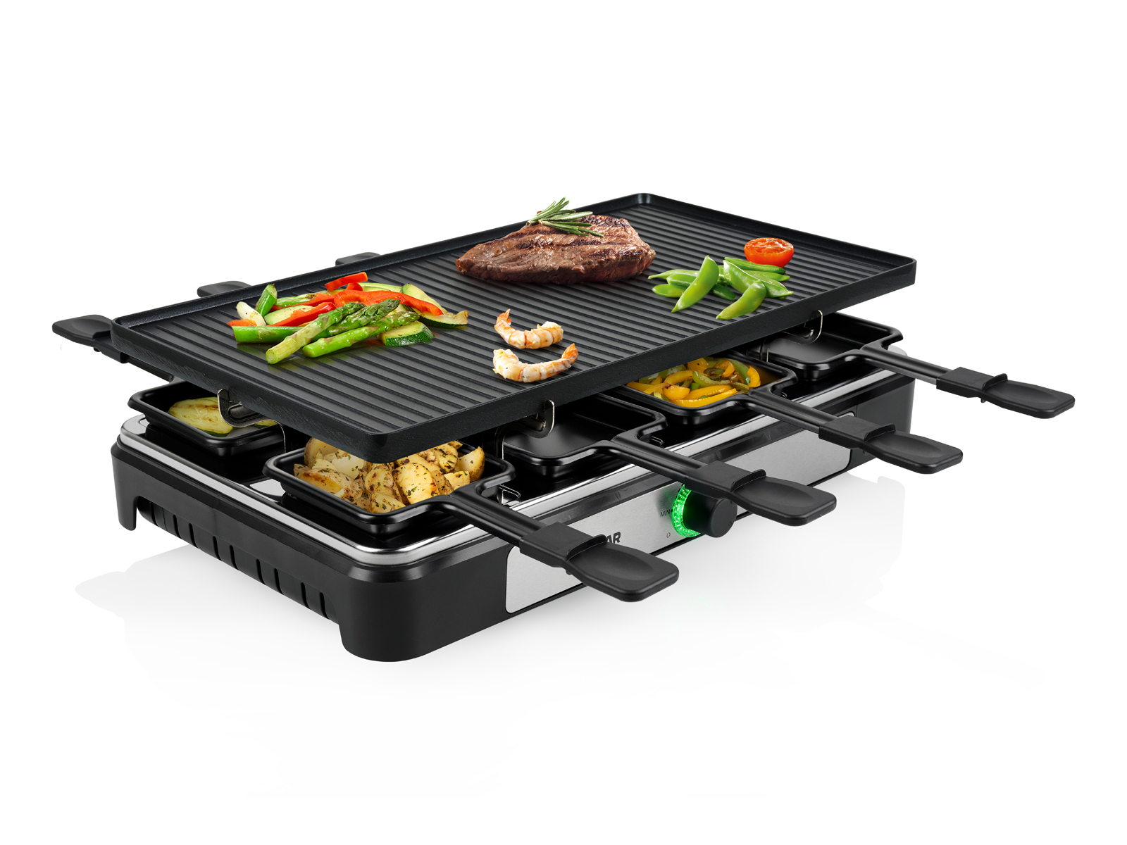 Descubre lo fácil que es cocinar con planchas de asar y raclettes, que alcanzan 2000 W para sellar rápido, ofrecen termostato ...