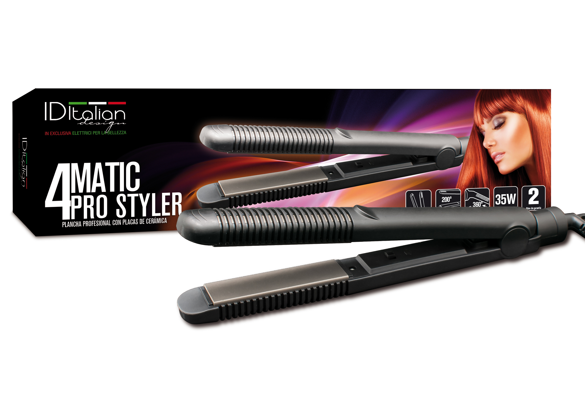 Plancha de pelo - ITALIAN DESIGN 4MATIC PRO STYLER, 35 W, 200 °C, Negro