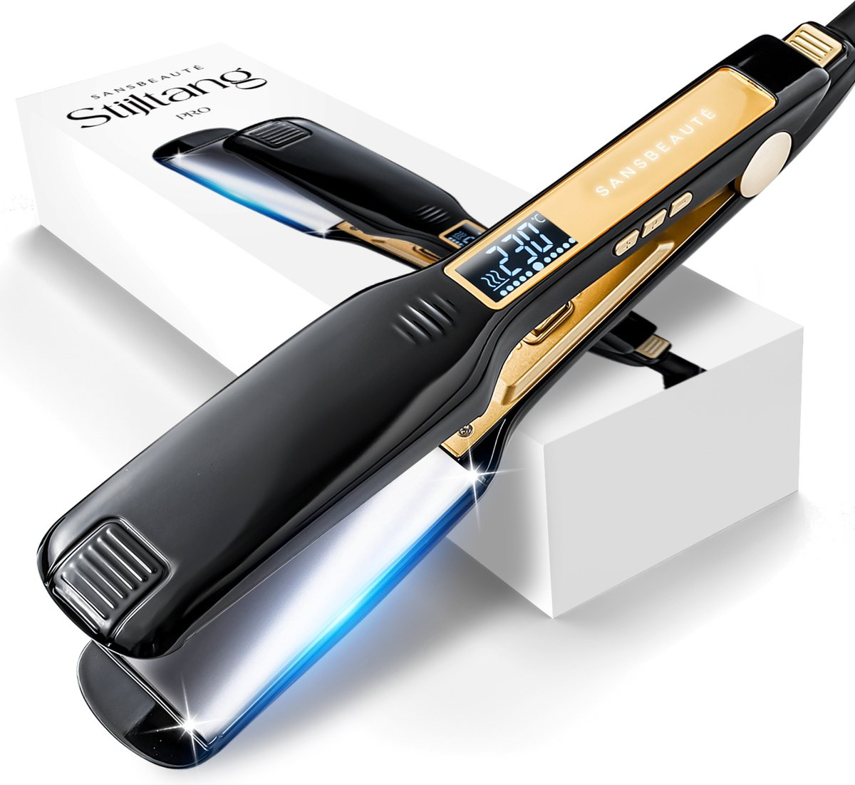 Plancha de pelo - SANSBEAUTÉ 2 en 1 ProWide, 2000 W, 230 °C, Negro