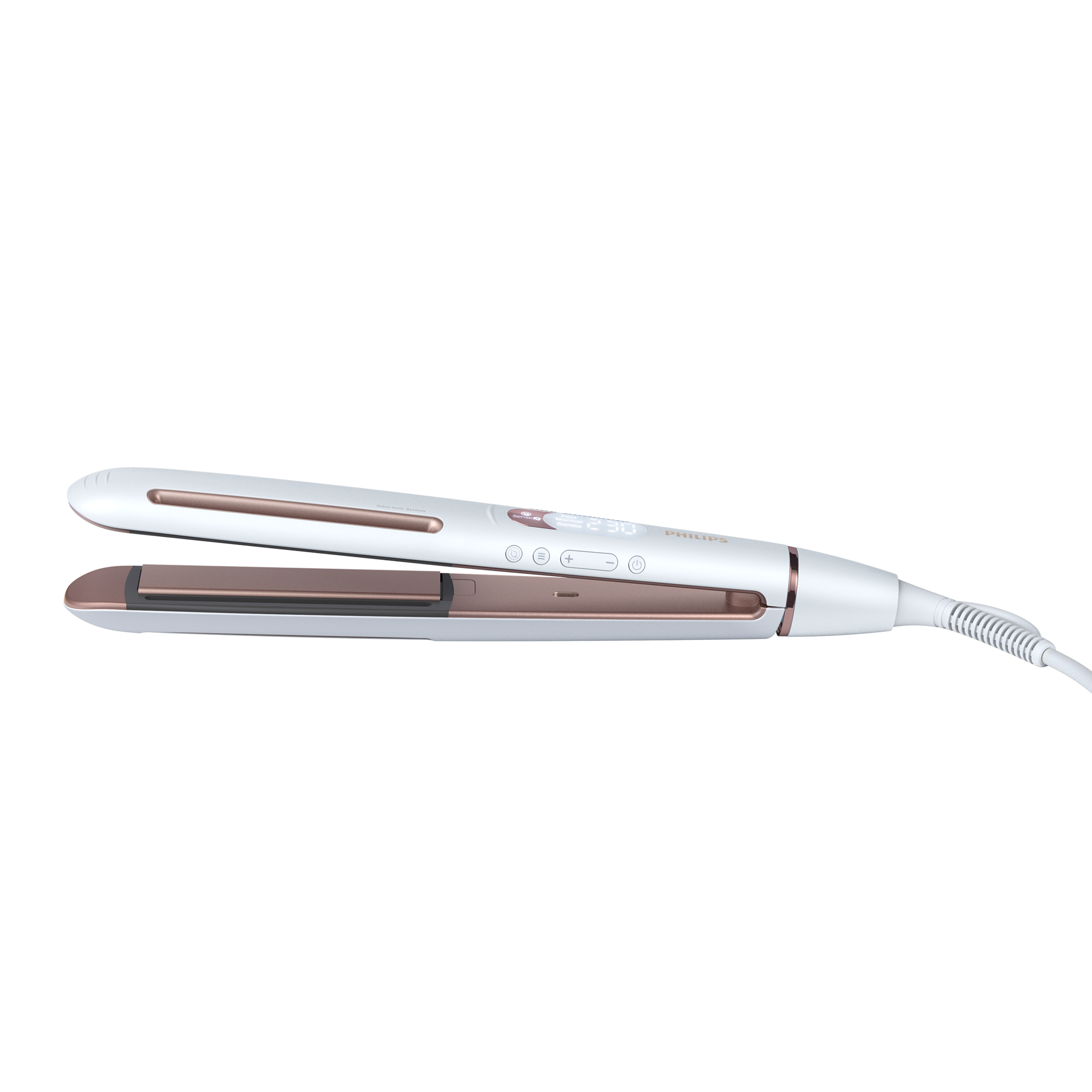Plancha de pelo - Philips BHS830/00, Cerámica, 3 modos, 53 W, 230 °C, Tecnología SenseIQ, Blanco
