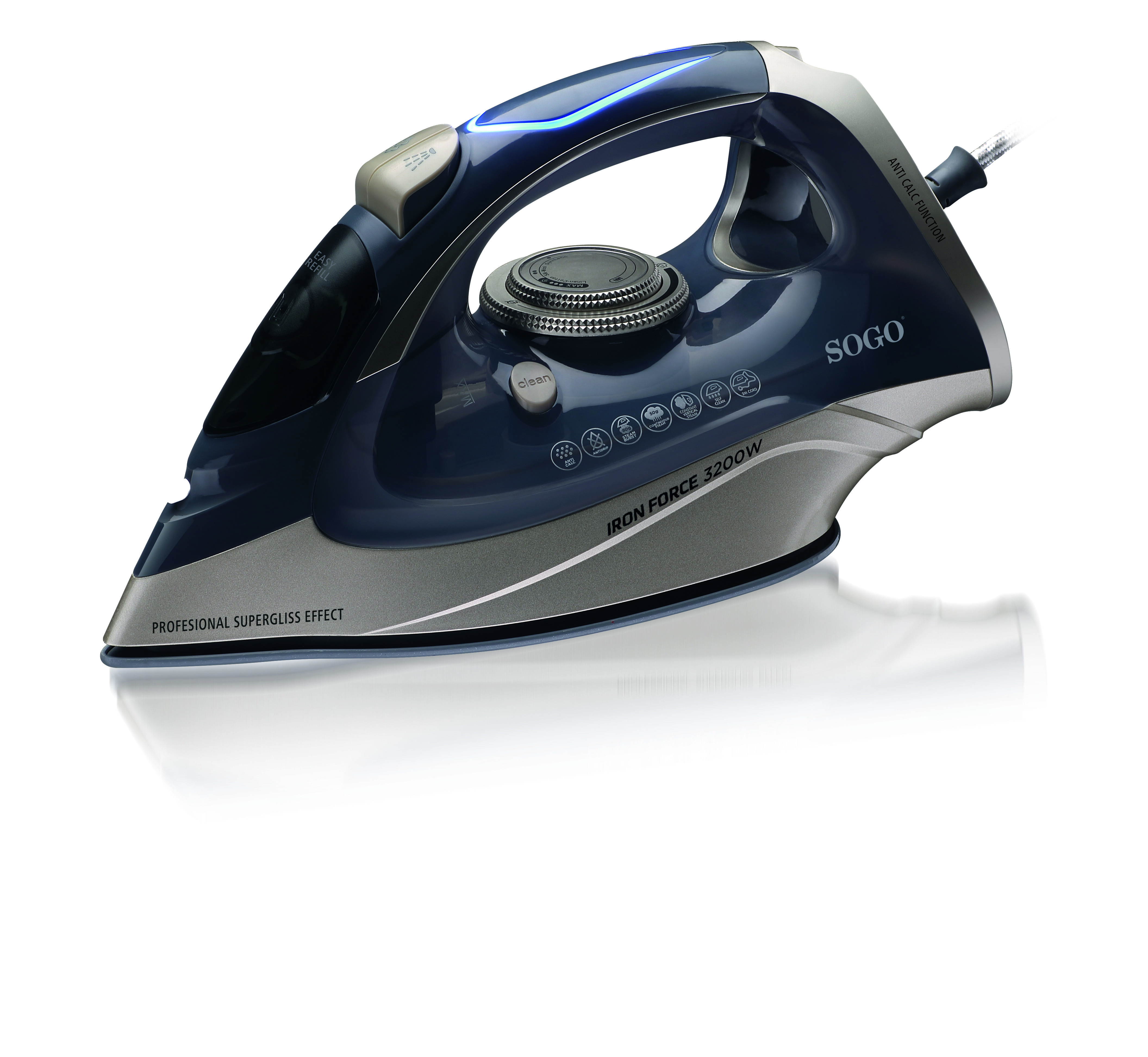 Suela de acero inoxidable: tarda más en calentarse respecto a la plancha de suela de aluminio y es más pesada. Mayor durabilidad y resistencia a los arañazos.
