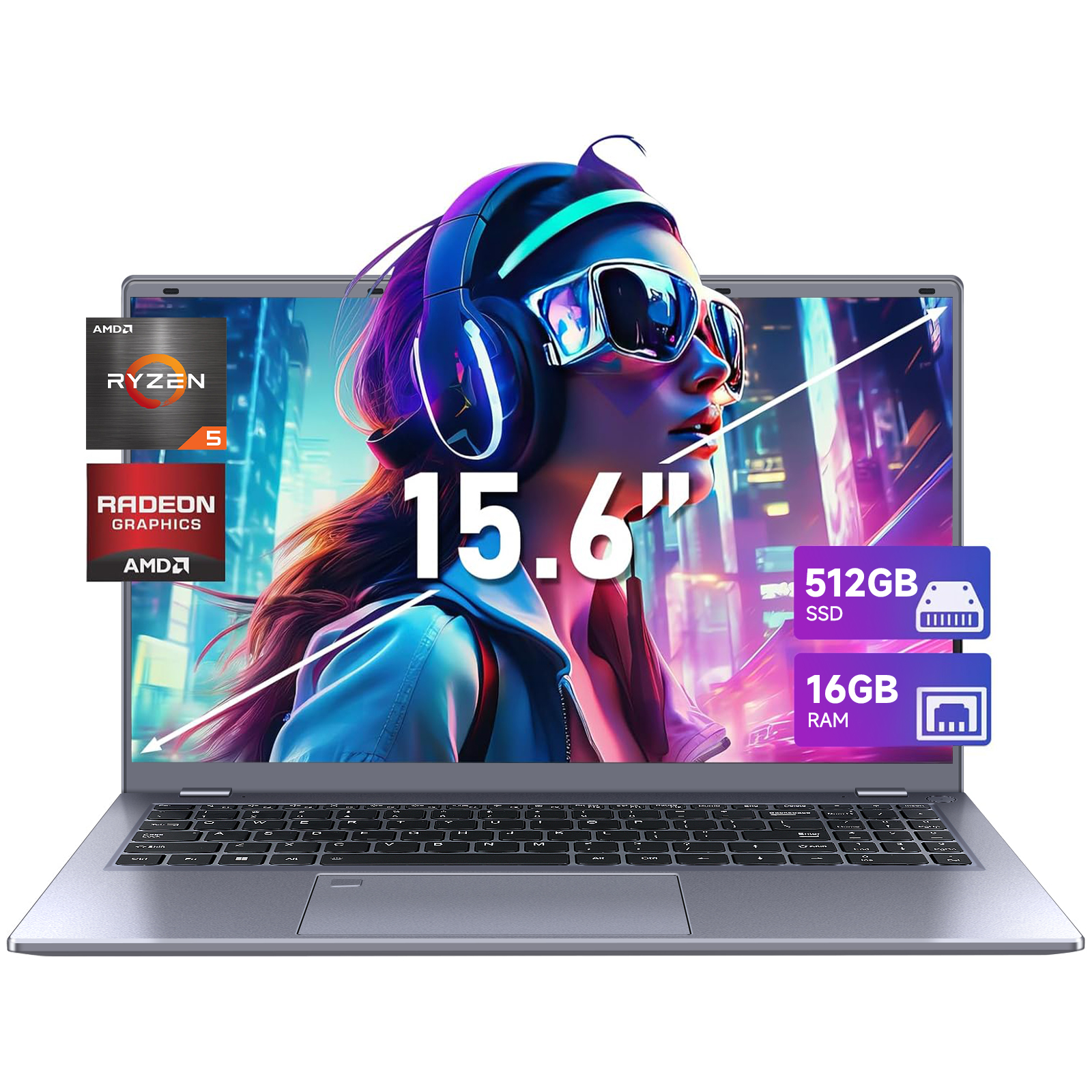 Portátil - VANWIN GLX2577KU, 15,6 " Full-HD, AMD Ryzen 5 5500 (Frecuencia máxima 4,0 GHz), 16 GB RAM, 512 GB SSD, Radeon™ RX Vega 7, Windows 11 Pro, gris