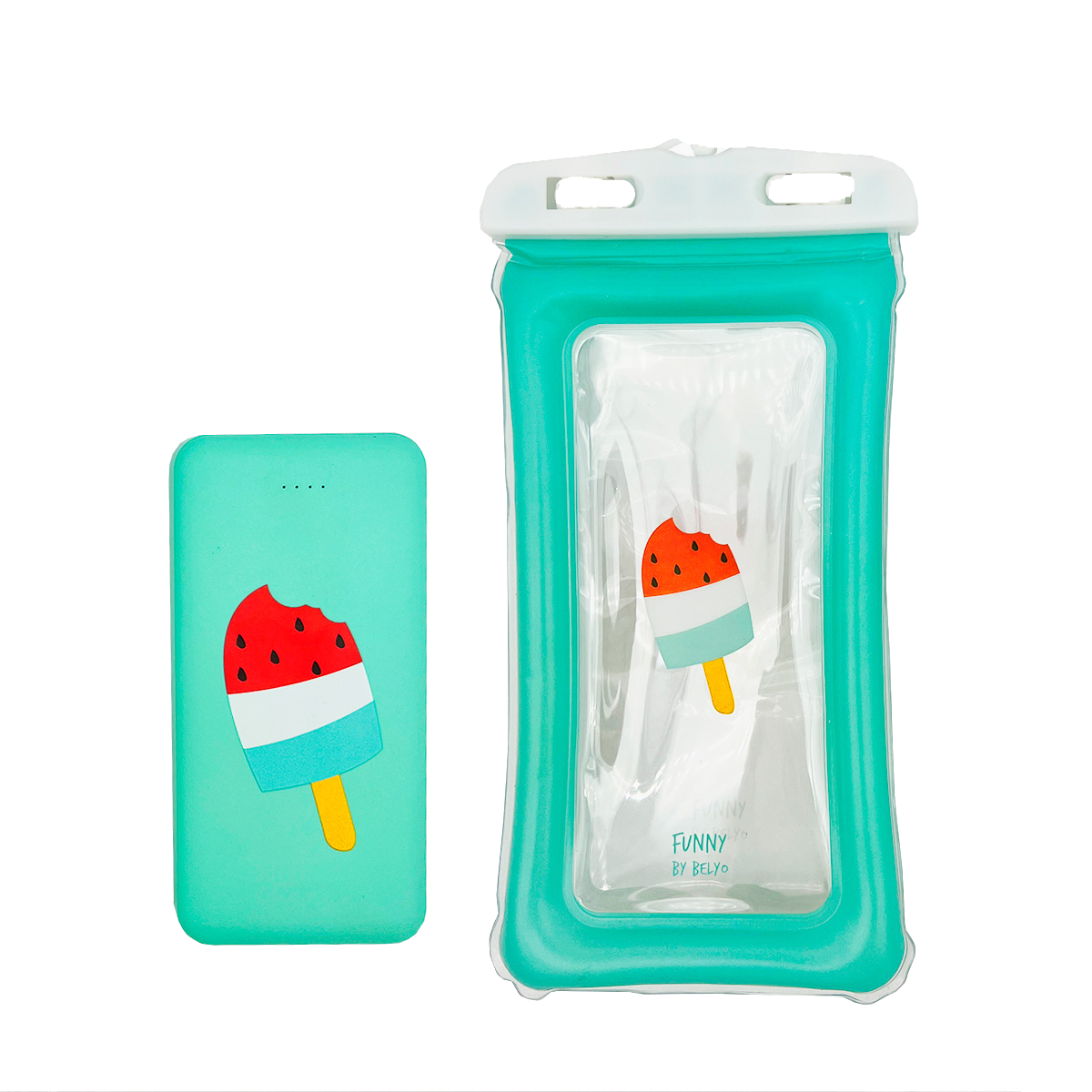 Powerbank - Belyo Ice Cream + Funda, Batería 10.000 mAh, Resistente salpicaduras, Multicolor