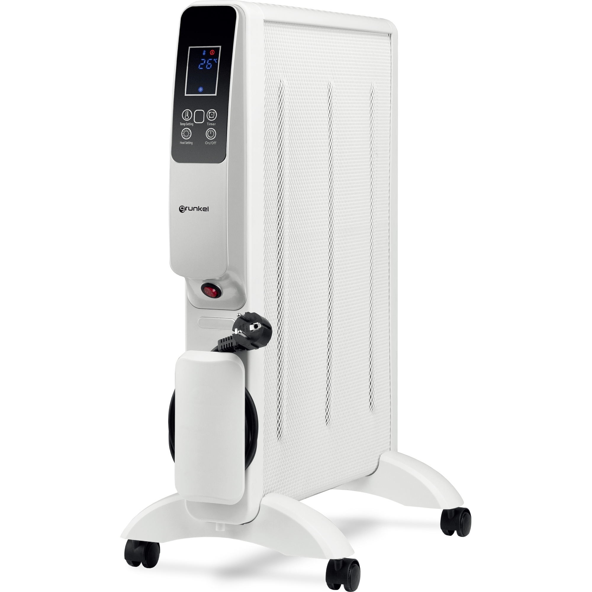 Radiador de mica - GRUNKEL Radiador de Mica de 3 elementos control digital - RMC-1500DG de 1500W Blanco, 1500 W, 2 niveles de calor, 4 elementos, Black