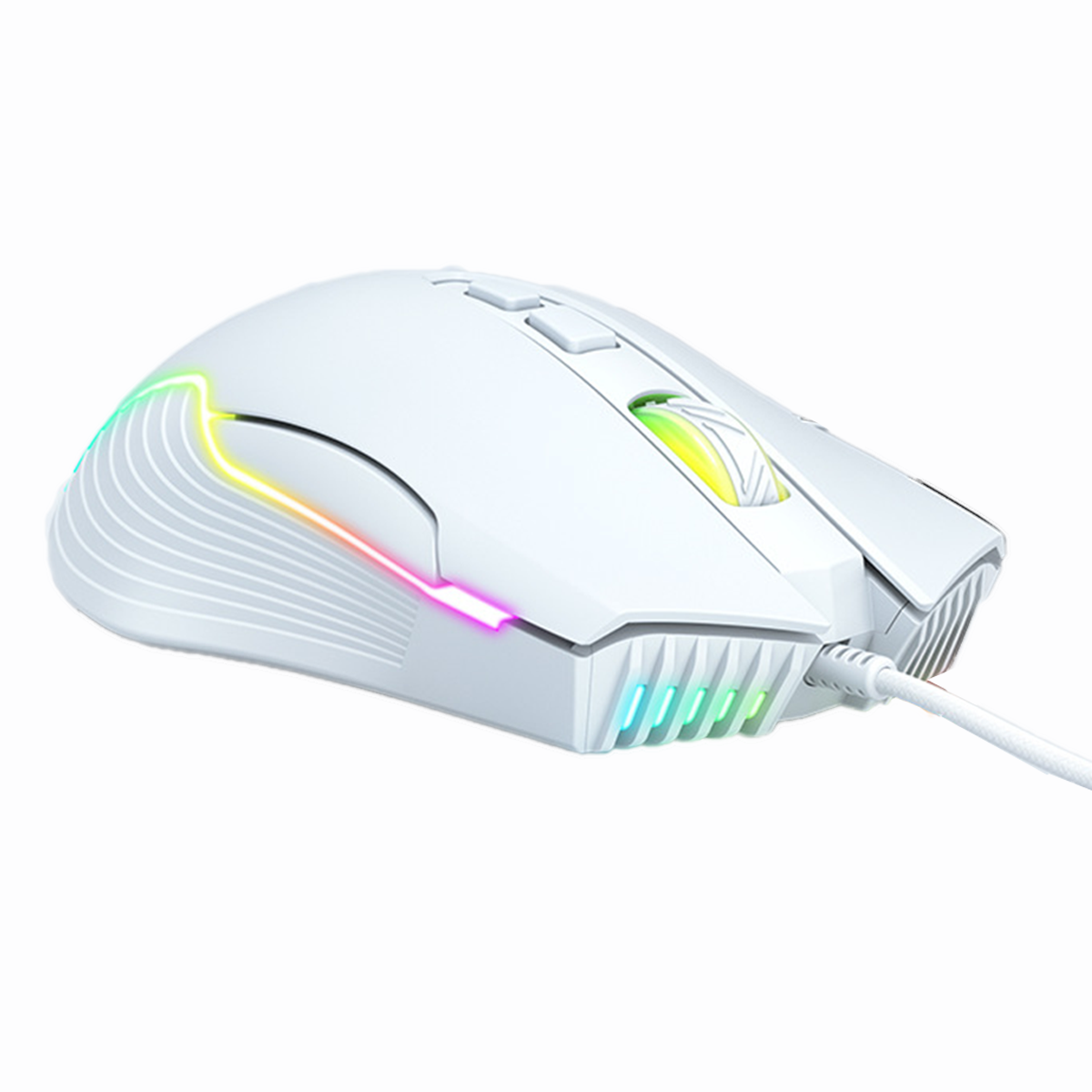 Ratón Gaming - KINSI CW905S, con luces, Con cable, 800-6400 ppp, Blanco