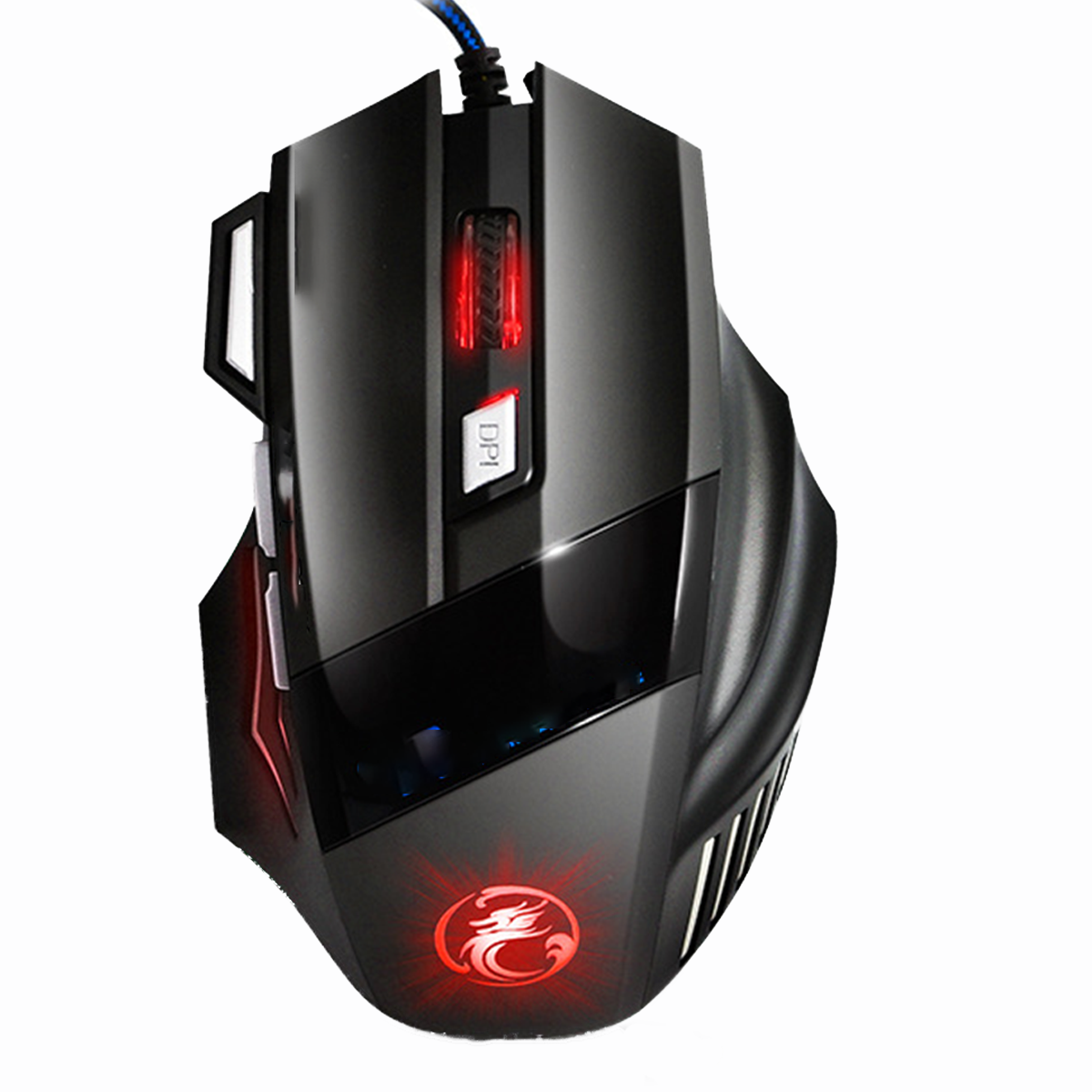 Ratón Gaming - KINSI X7, con luces, Con cable, 2400 ppp, Negro