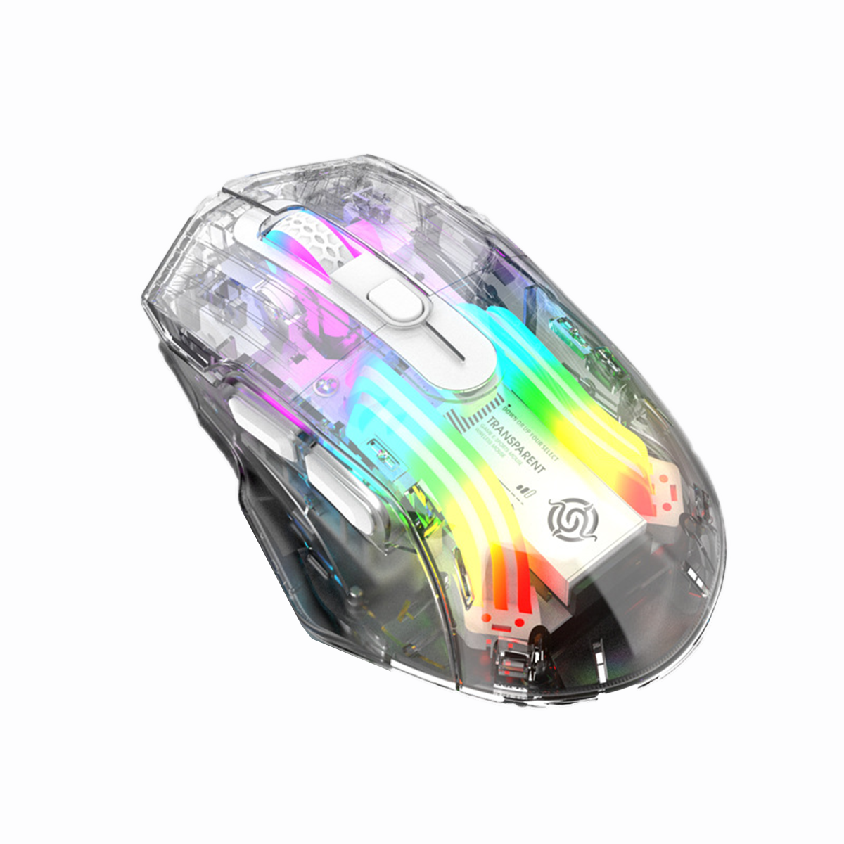 Ratón Gaming - KINSI BM530, carcasa transparente, Adaptadores USB + Bluetooth, 3600 ppp, Blanco