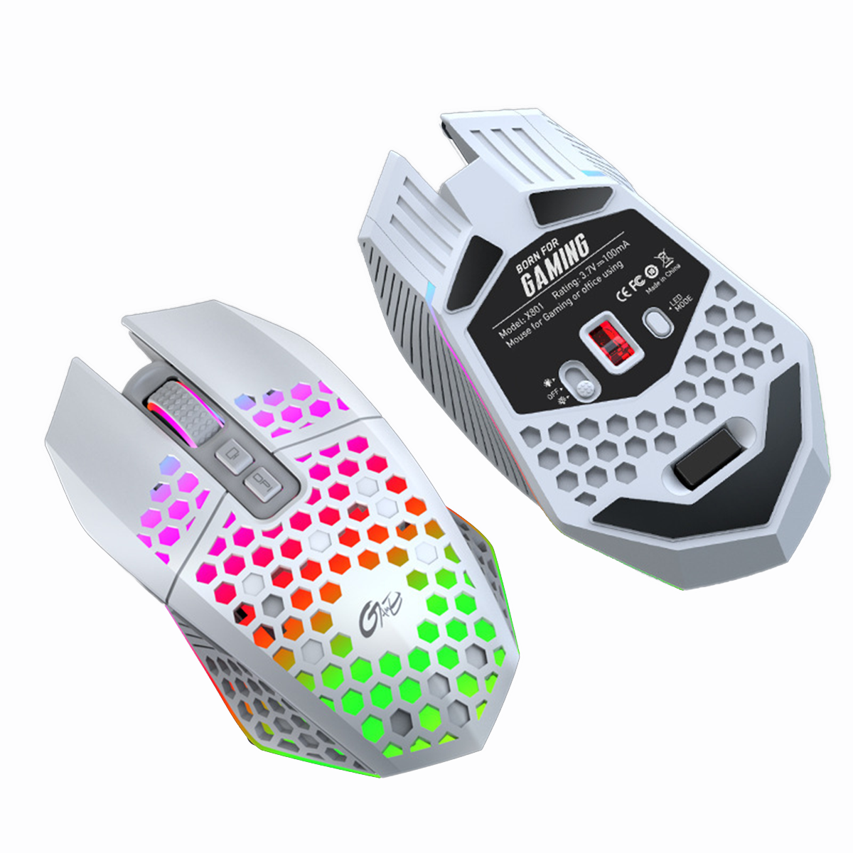 Ratón Gaming - KINSI X2, luces de colores, Adaptadores USB + Bluetooth, 2400 ppp, Blanco