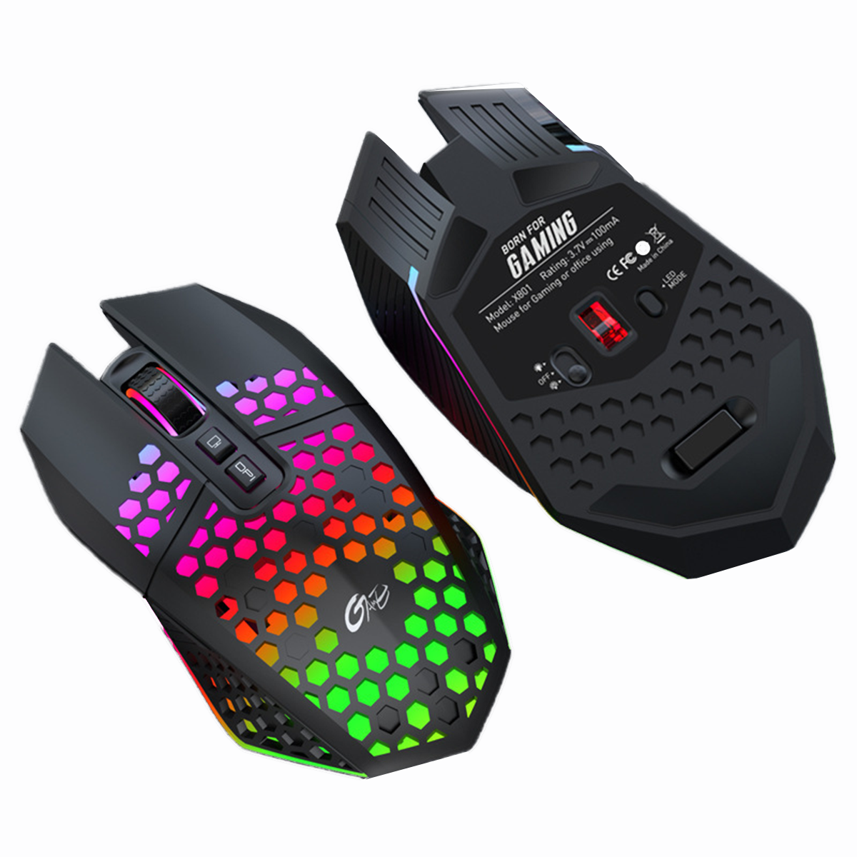 Ratón Gaming - KINSI X2, luces de colores, Adaptadores USB + Bluetooth, 2400 ppp, Negro