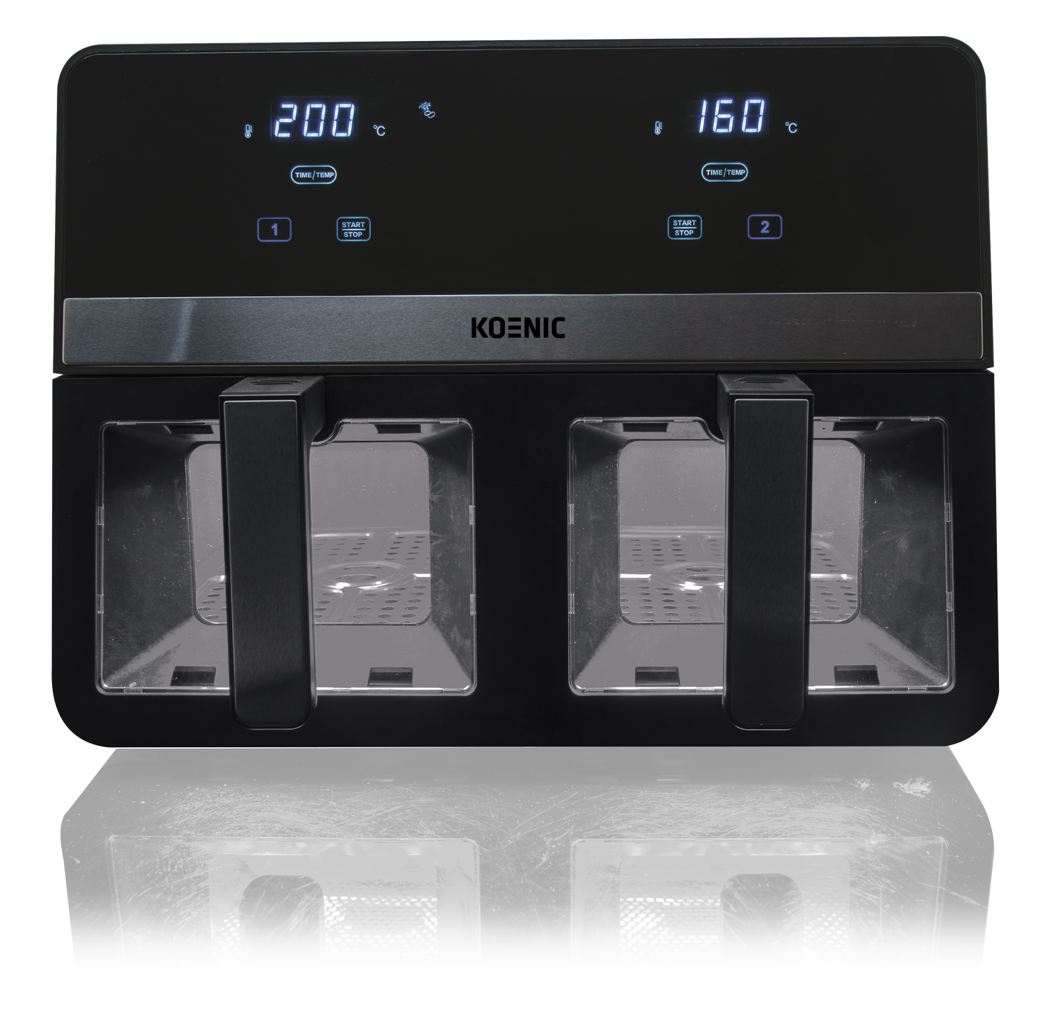 REACONDICIONADO Seminuevo Muy bueno Freidora de aire - KOENIC KAF 924224 B, Dos cestas, 2400 W, 9l, 8 Programas, 80-200ºC, Negro/Plata