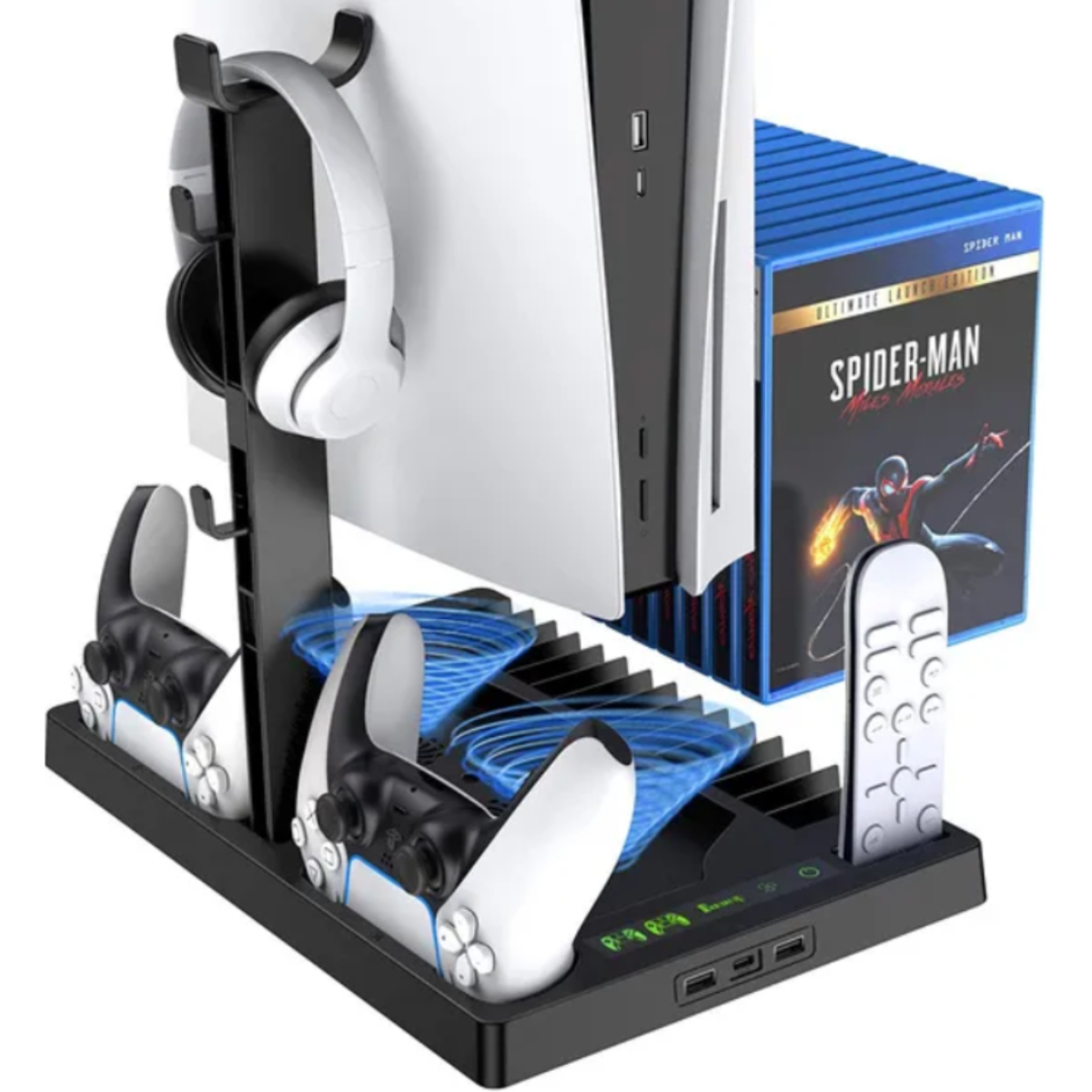 Base de refrigeración Klack para PS5 con soporte para auriculares, cargador de controladores y organizador de juegos