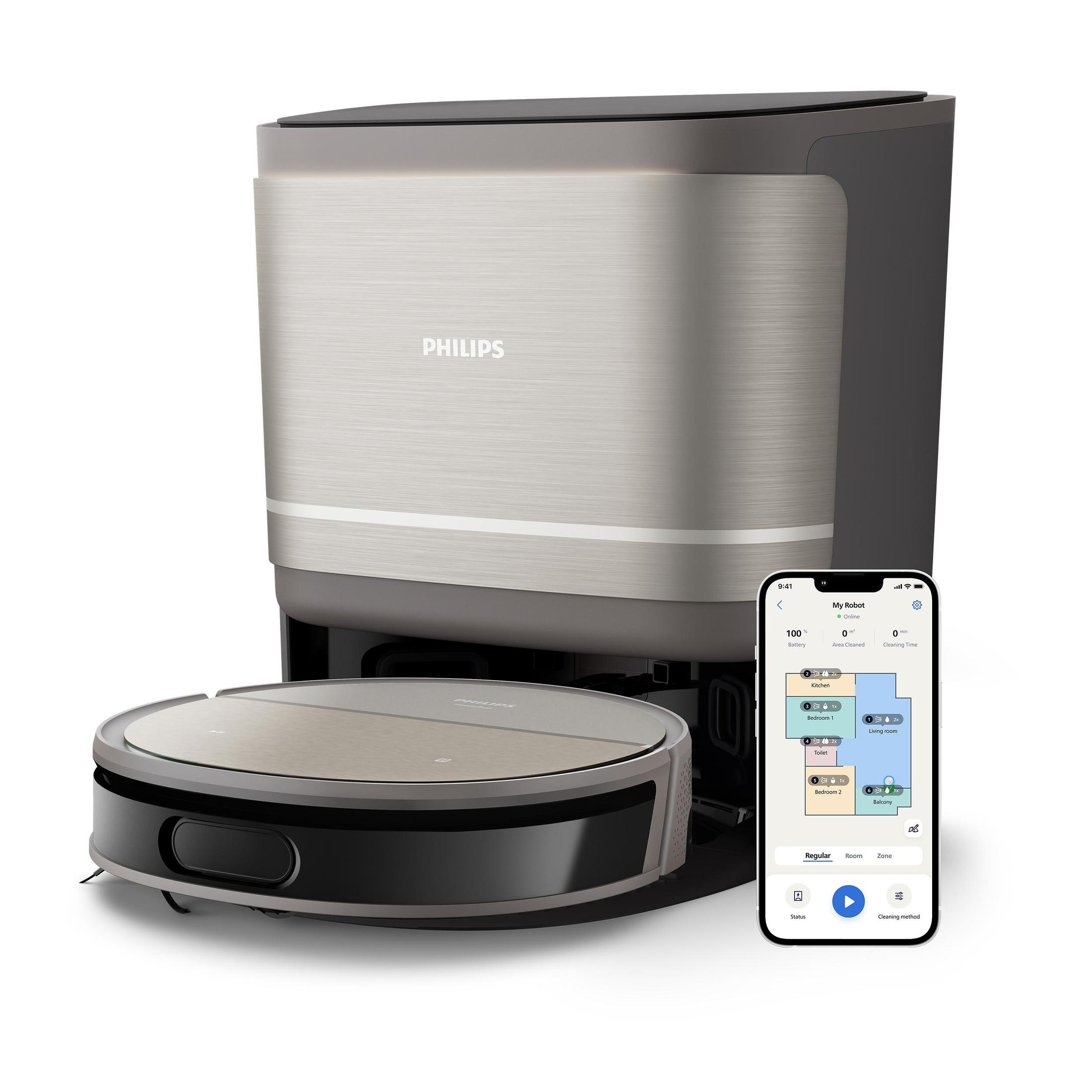 Robot aspirador - PHILIPS XU5000/10, 14,76 V, Potencia de succión 10000 kPa, Depósito 0,26 l, Autonomía 200 min, Gris