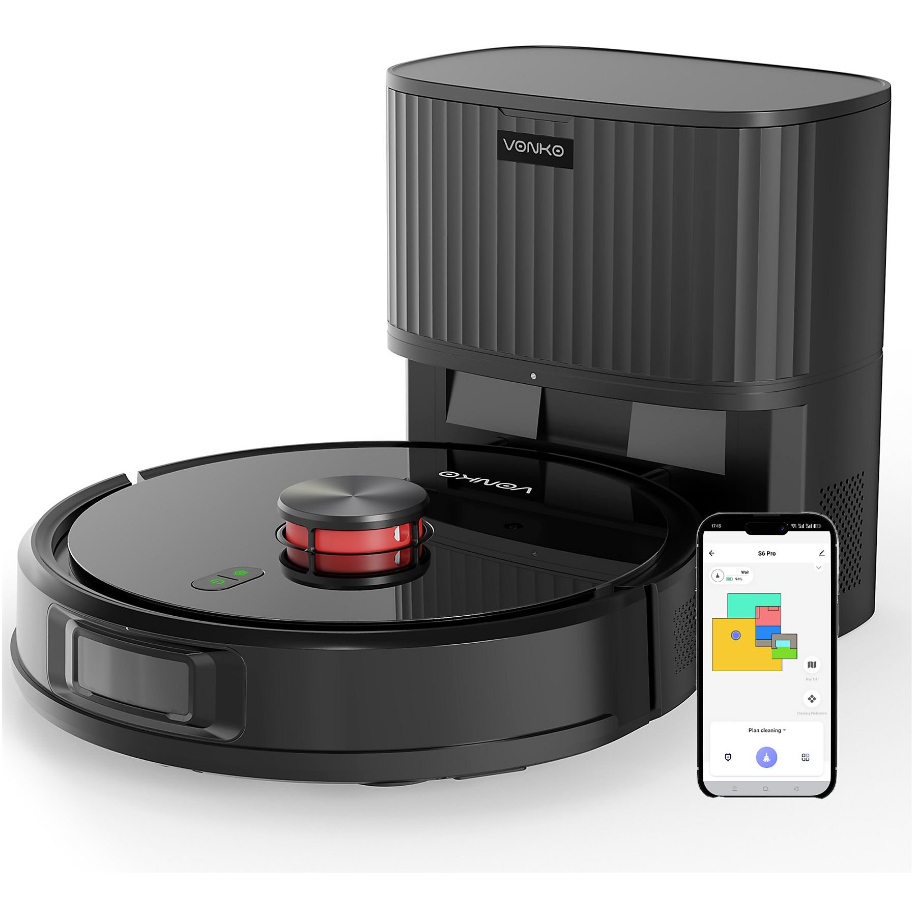 Aspiradora robot - VONKO S6PRO, 6000 Pa de potente succión, 50 W, Depósito 2,5 l, Autonomía 180 min, naranja