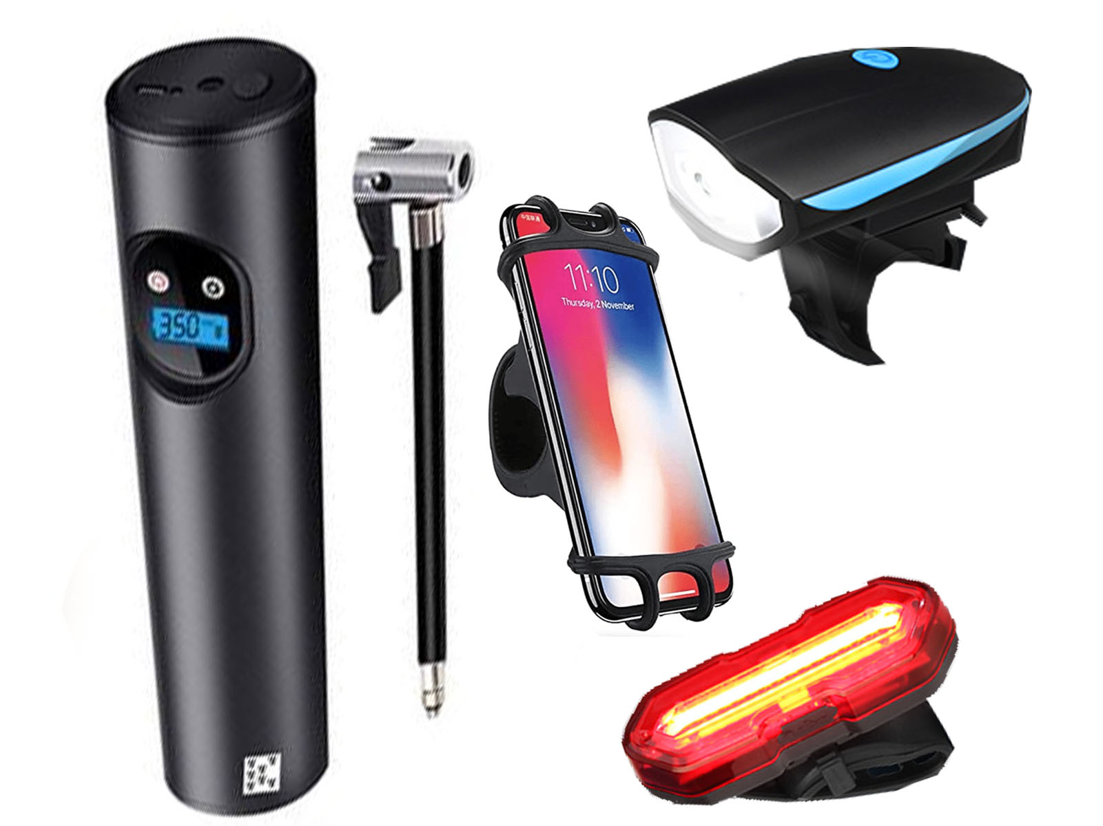 Bomba de mano + Luz trasera y delantera + Soporte de telefono movil